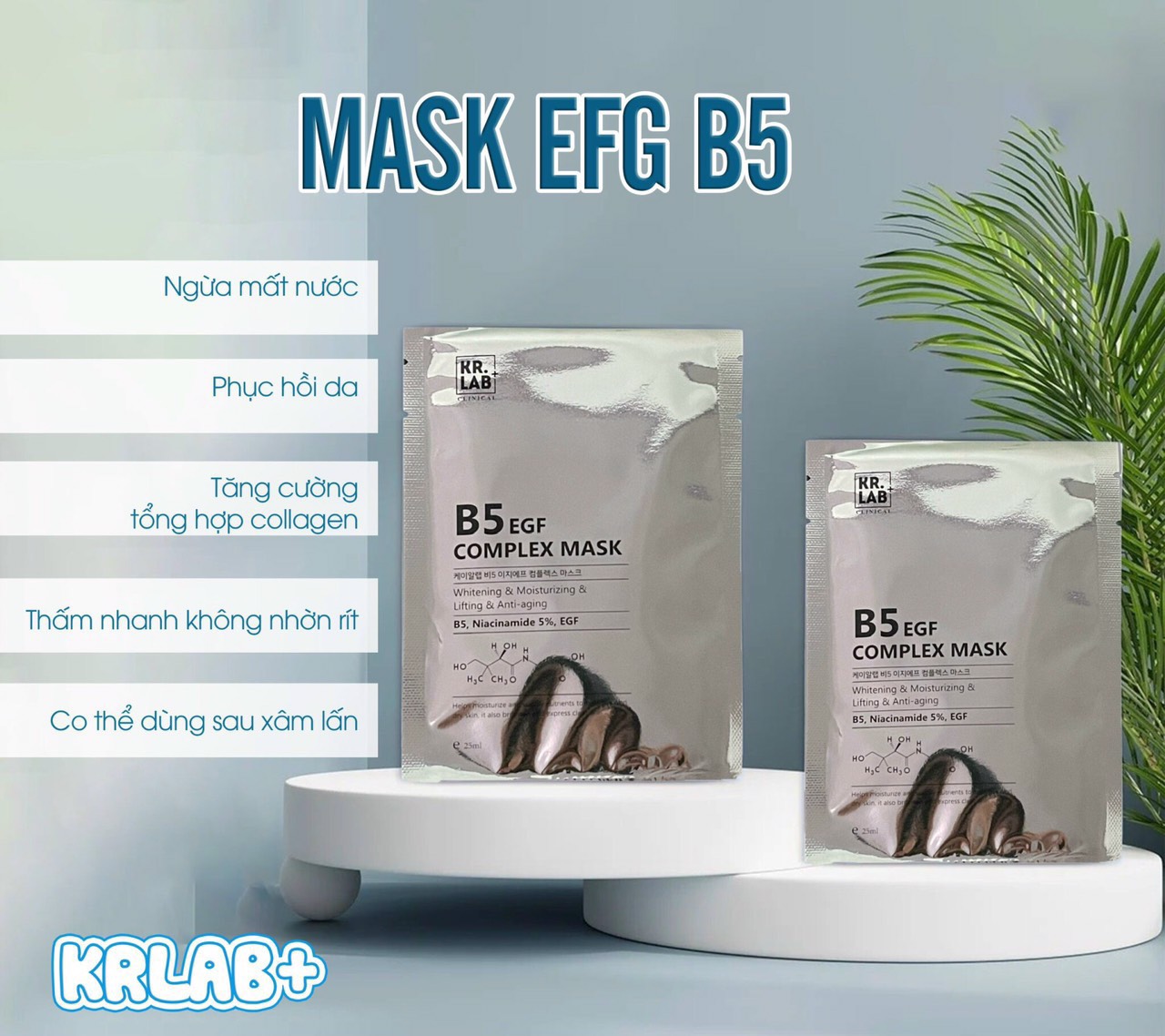 Thương hiệu Kr.Lab Xuất xứ Hàn Quốc Hạn 2026   Thành phần Công dụng Mặt nạ giúp cấp ẩm và dưỡng trắng da giúp da sáng mịn đầy sức sống   MẶT NẠ B5 EGF