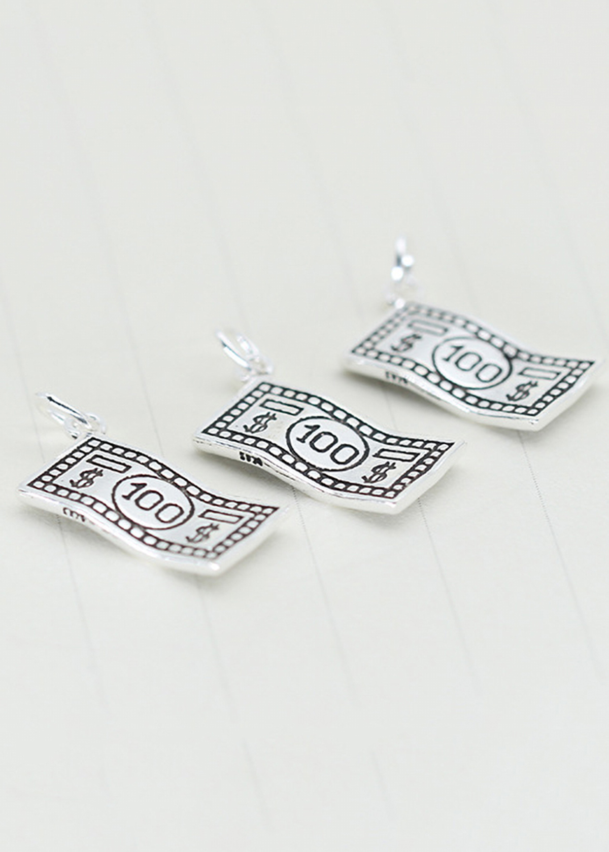 CHARM BẠC HÌNH TỜ 100 ĐÔ LA TREO