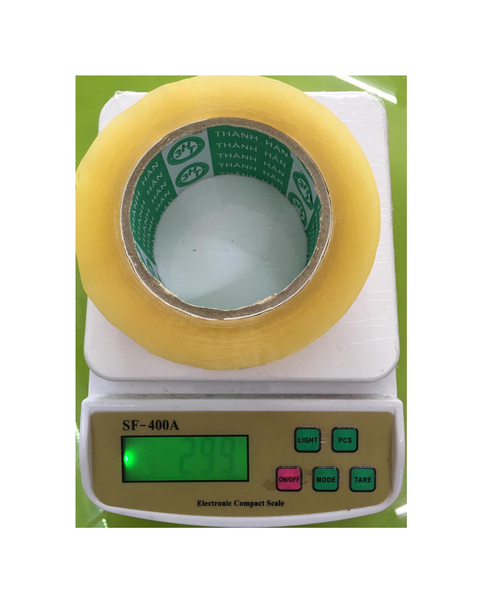 - Thông số: + 100 yard: 1.2kg/cây - 1 cuộn 200gr. + 200 yard: 1.5kg/cây - 1 cuộn 300gr. Băng Keo Trong 100 Yard (4.8mm) có độ bền cao, dính tốt trên nhiều bề mặt