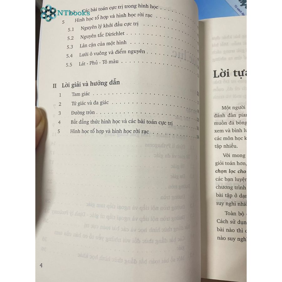 Toàn bộ các bài tập trong sách đều có kèm lời giải khá chi tiết. Cách sử dụng sách là: cố gắng tự làm các bài tập, nếu đã làm xong bài nào thì có thể so sánh vỏi lòi giải bài đó trong sách. Những bài nào suy nghĩ lâu mà chưa tìm ra lời giải, các bạn có thể xem lời giải trong sách để học cách giải, rồi lại thử tự làm những bài khác dựa trên những phương pháp đã học được qua các lời giải mẫu. Mỗi bài tập hình học có thể có nhiều cách giải khác nhau, lồi giải trong sách chỉ là một cách và các bạn học sinh hoàn toàn có thể tìm ra những cách giải khác.
