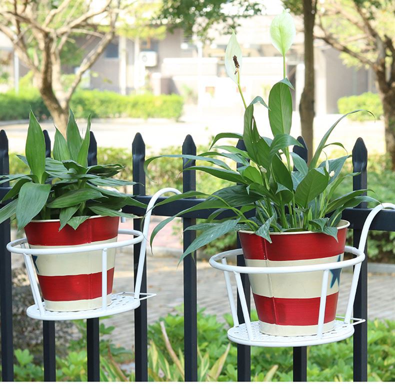 Giá sắt treo ban công làm bằng sắt rỗng, nhẹ vững chắc, sơn trắng, nâu sang trọng, làm nổi bật thêm vẻ đẹp của chậu hoa. Chắc chắn sẽ làm điểm nhấn thu hút cho