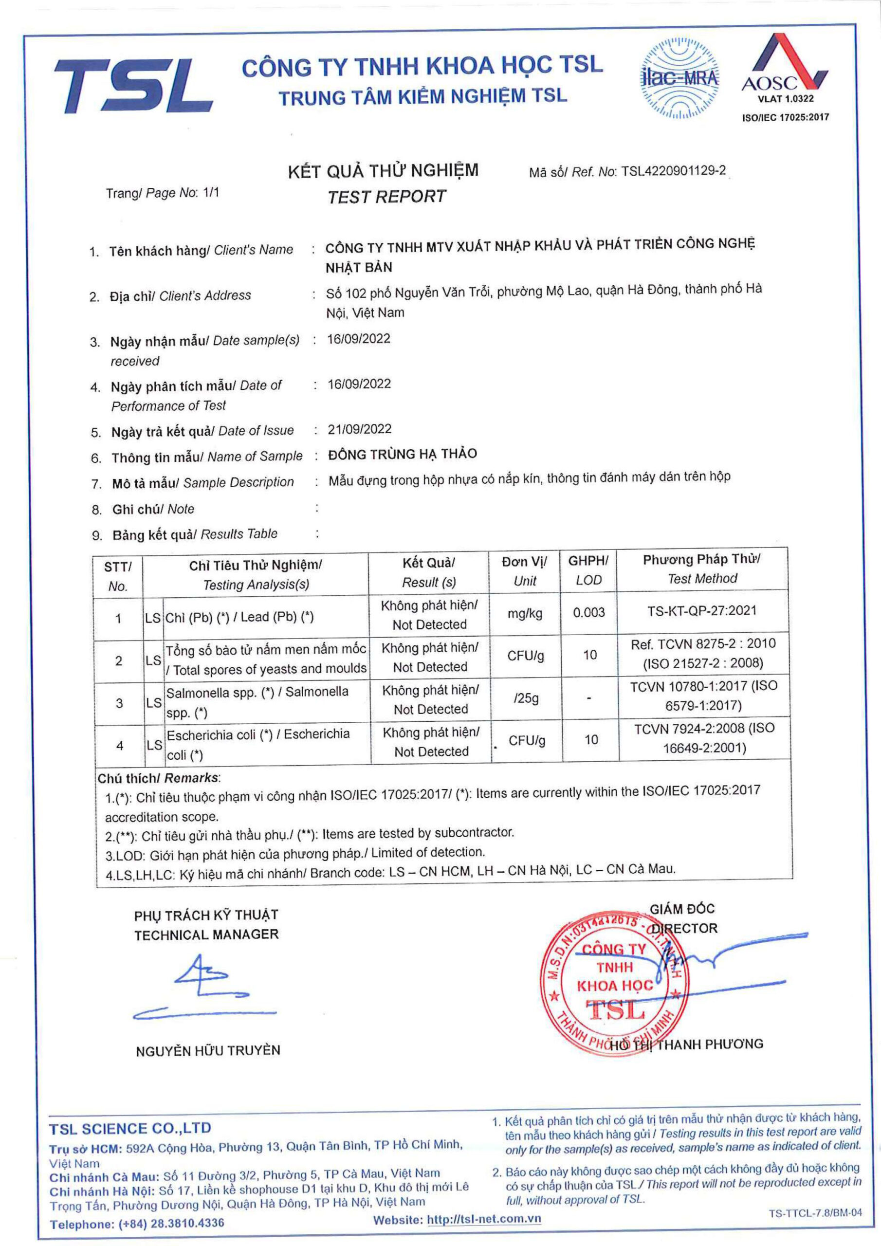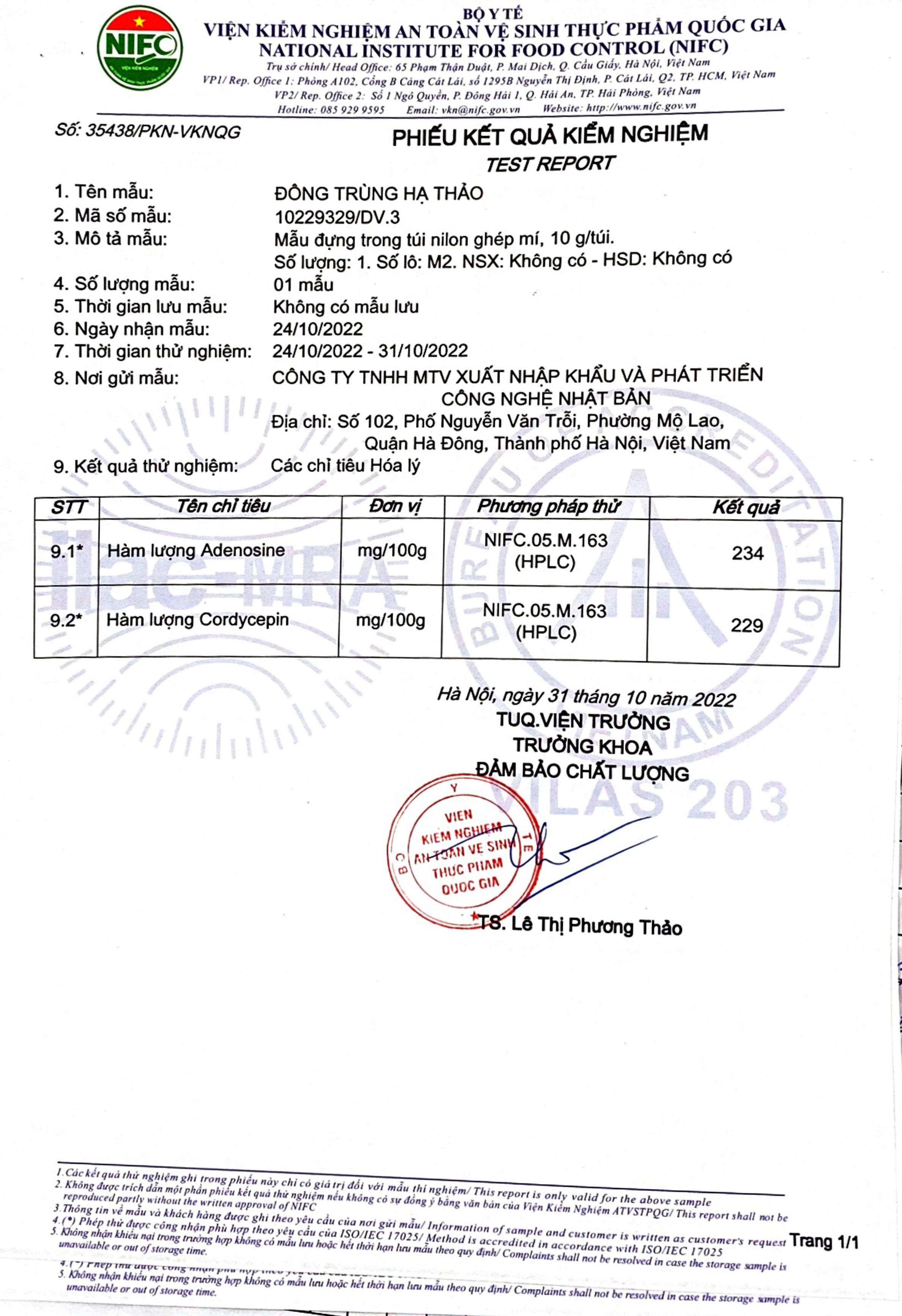 Đông trùng hạ thảo Kochi được nhiều chứng nhận uy tín như: