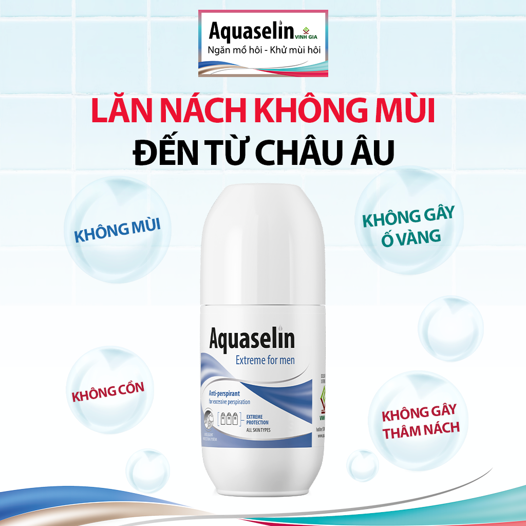 Aquaselin Lăn khử mùi Aquaselin dành cho nam giới dùng cho vùng nách đổ mồ hôi & mùi hôi từ vừa phải đến nhiều. THÀNH PHẦN SẢN PHẨM Thành phần từ thiên nhiên: Aqua, Aluminum