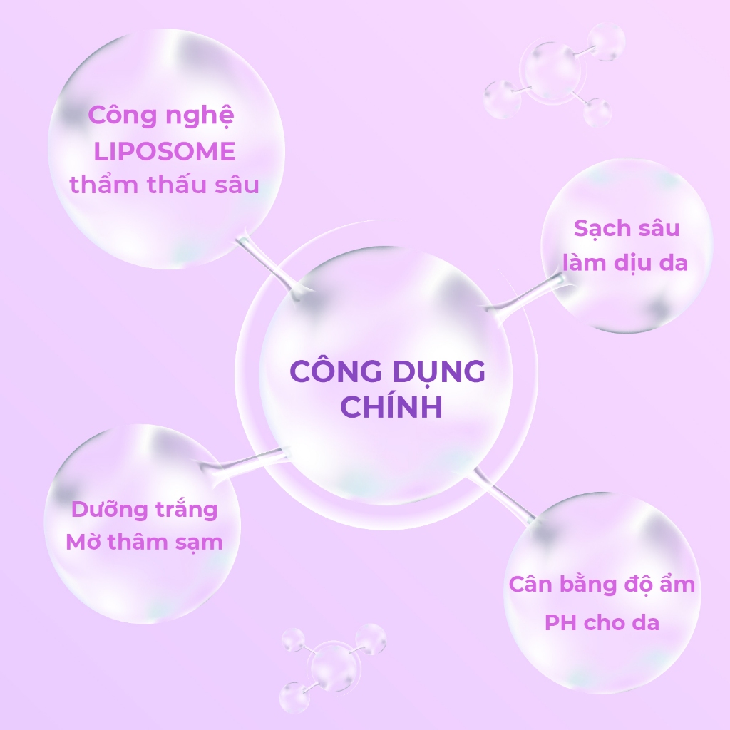 - Vitamin B5 & B3 complex: Dưỡng da, làm mềm, dịu da, chống kích ứng/ Làm mờ thâm nám, ngừa mụn, dưỡng trắng, tăng độ đàn hồi.