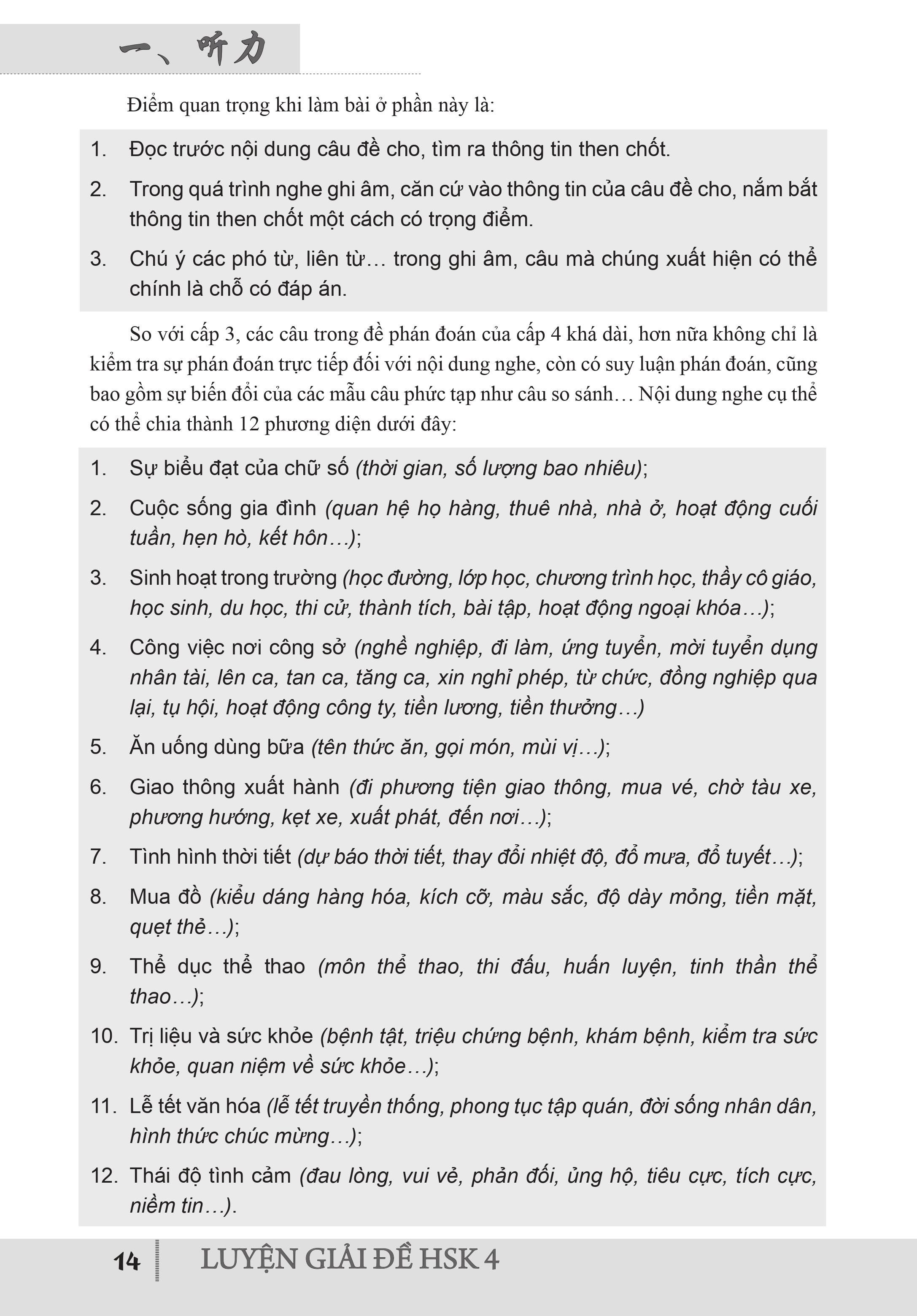 - Phần 2: Đề thi mô phỏng (cung cấp 12 đề thi mô phỏng HSK cấp 4)