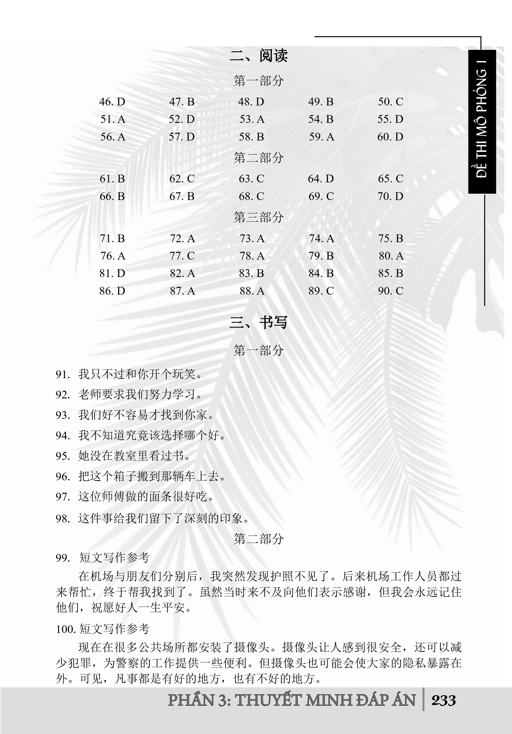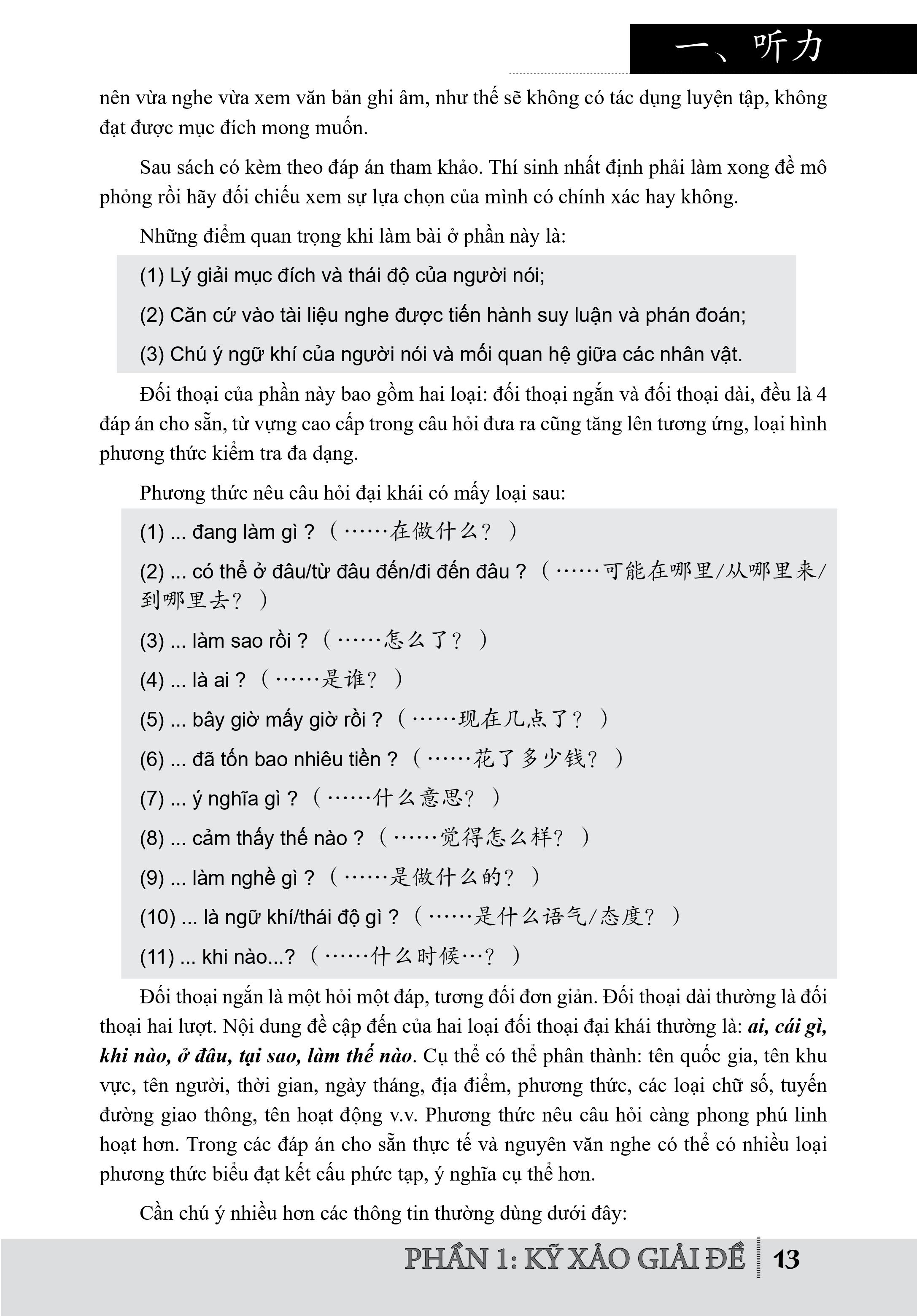 Ngoài những đề thi mô phỏng ở phần 2, sách Luyện giải đề HSK cấp 5 còn có hệ thống bài tập thuộc phần 1 (Phần Những kỹ xảo giải đề). Hệ thống bài tập này bao gồm 2 nhóm: nhóm Bài tập kỹ xảo và nhóm Bài tập tính giờ.