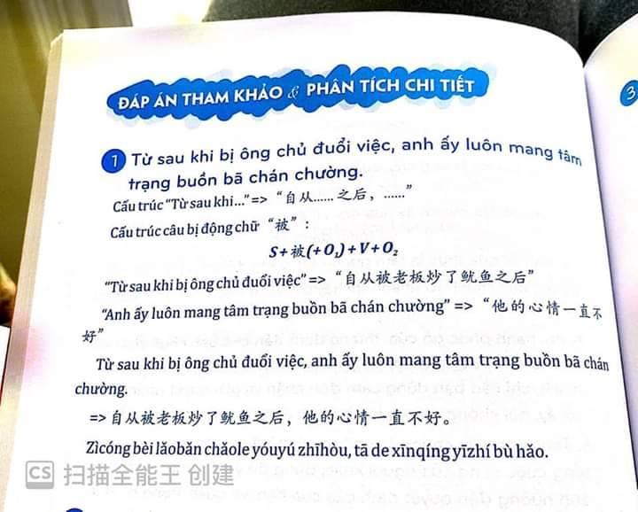 - Muốn tìm một cuốn sách bài tập tiếng trung hỗ trợ cải thiện, củng cố ngữ pháp, cấu trúc. Sách có: 37 bài dịch theo câu, 10 câu mỗi bài tổng 370 câu 60 đoạn dịch đoạn văn với các nội dung tổng hợp Có cả dịch Việt Trung lẫn dịch Trung Việt. Toàn bộ đều có đáp án và phân tích chi tiết cách sử dụng ngữ pháp và từ vựng của mỗi câu, đoạn dịch Đáp án đầy đủ, phân tích siêu chi tiết và dễ hiểu Trình bày đẹp, khoa học Có đầy đủ phiên âm chuẩn, dễ dàng hơn cho người tự học Được kiểm duyệt nội dung bởi chuyên gia ngôn ngữ người Trung - Hạ Bắc Sinh