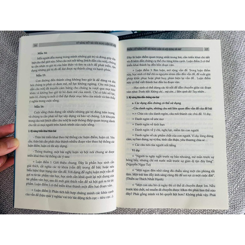 Mua tại TiktokKỹ năng viết bài văn nghị luận xã hội Kể từ năm 20222-2023, chúng ta đã chính thức áp dụng bộ sách giáo khoa mới vào chương trình dạy học các cấp. Việc tiếp cận với điều mới chưa bao giờ dễ dàng, đặc biệt cùng một lúc có 3 bộ sách: Kết nối tri thức với cuộc sống, Cánh Diều và Chân trời sáng tạo. Cuốn sách KỸ NĂNG VIẾT BÀI VĂN NGHỊ LUẬN XÃ HỘI sẽ định hướng cho thầy cô và các em kỹ năng triển khai bài văn nghị luận xã hội đúng và hay, đồng thời cung cấp các bài viết tham khảo, hệ thống các dẫn chứng vận dụng trong bài nghị luận xã hội. Cuốn sách bám sát đề minh họa môn Ngữ Văn của Bộ Giáo dục và Đào tạo công bố vào tháng 12 năm 2023, đáp ứng tiêu chí: cập nhật, chi tiết và sáng tạo. —————————- Cuốn sác bao gồm ba phần: