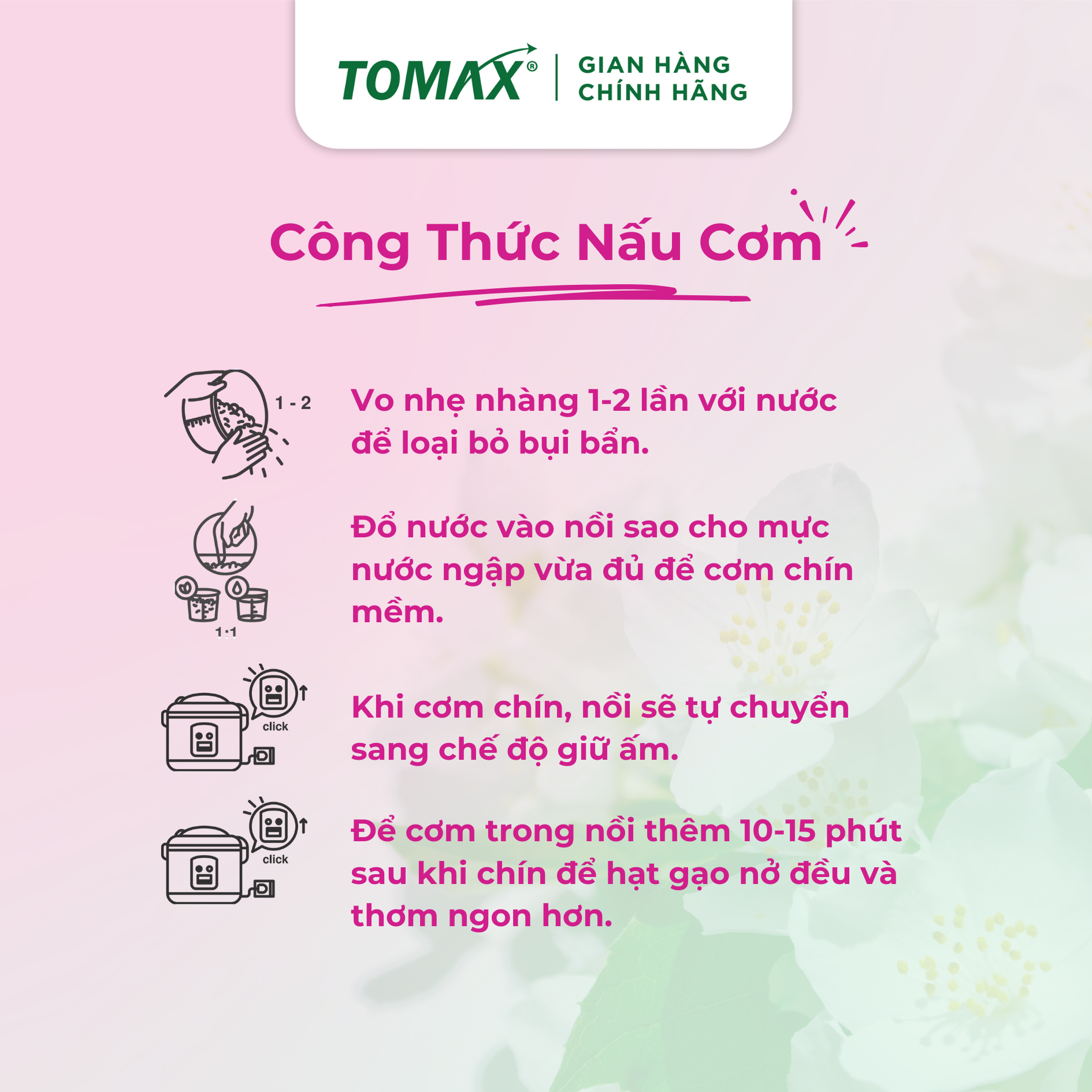 Hướng dẫn cách nấu cơm ngon với gạo Jasmine Tomax: