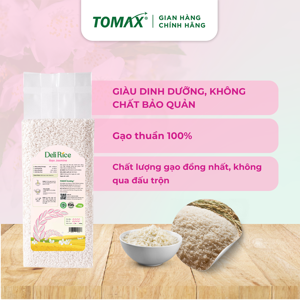 COMBO 3 TÚI 1KG GẠO ĐÀI THƠM Tomax - TƠI XỐP, DẺO THƠM, THƠM DỊU - TOMAX Gạo hữu cơ Đài Thơm Tomax 100% không có chất bảo quản, không có chất chống mọt, chống