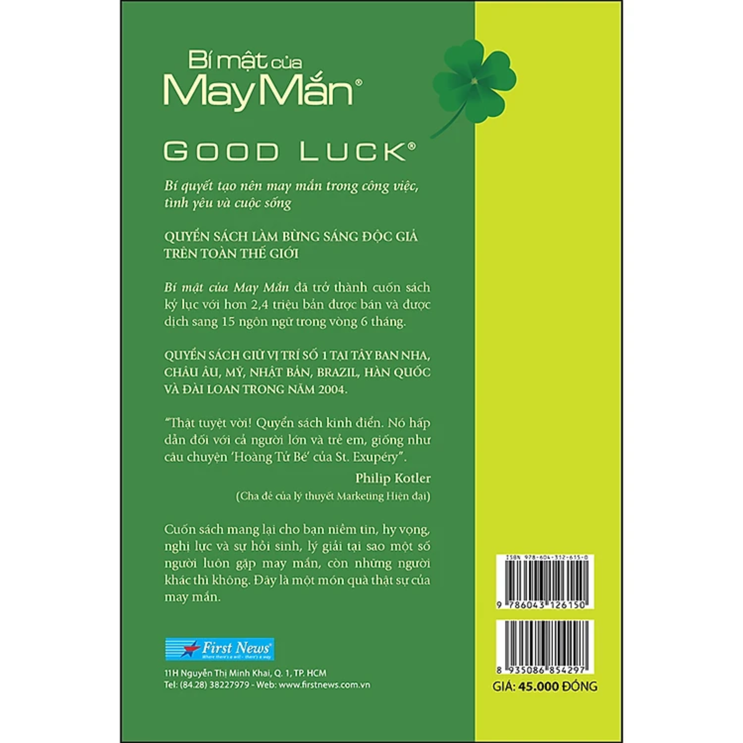 Bí quyết thành công và may mắn của Max nằm ở câu chuyện kỳ diệu mà người ông đã kể lại cho Max từ nhiều năm trước. Câu chuyện đó thật kỳ bí và có sắc thái gợi nhớ đến những nhà giả kim, hiền triết xa xưa, chỉ ra bí mật, cách nắm bắt các cơ hội và gặt hái may mắn, thành công. Trong đoạn kết đầy bất ngờ, Good Luck tạo ra một chu trình khép kín, mang lại sự khích lệ, những hướng dẫn cách thực hiện và thật trọn vẹn với một câu chuyện đầy cuốn hút. Đây thực sự là một món quà đặc biệt, thú vị và đầy cảm hứng mà Alex Rovira và Fernando Trías de Bes đã mang đến cho chúng ta.