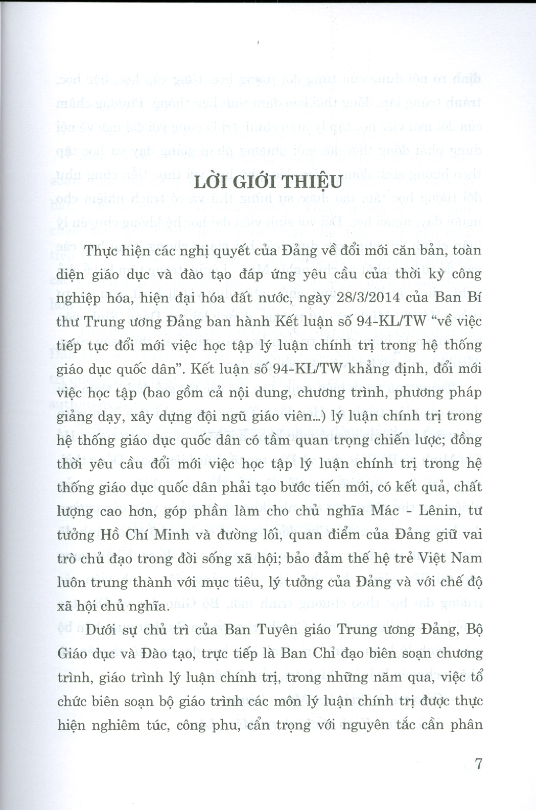Bộ giáo trình được biên soạn theo tinh thần đổi mới cả về nội dung và phương pháp giảng dạy, tiếp cận với những phương pháp giáo dục mới, cập nhật những nghiên cứu, kiến thức lý luận chính trị mới, chú trọng liên hệ với thực tiễn công cuộc đổi mới, phát triển đất nước.