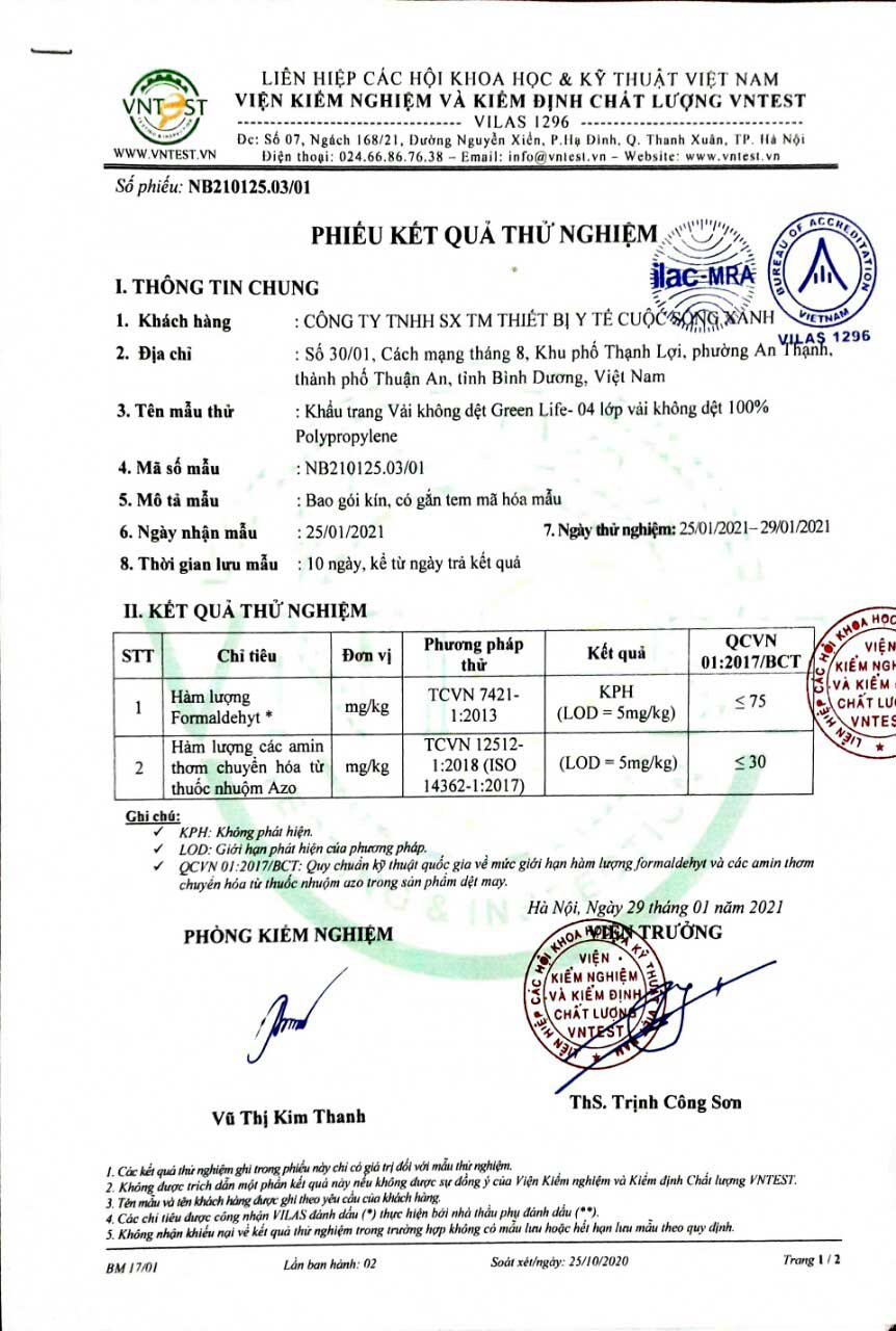 Cấu tạo: - Lớp 1: là lớp bên ngoài, làm từ vải Cotton hoặc lụa tơ tằm ngăn lọc hạt bụi, khí độc hại. - Lớp 2: là lớp ở giữa, thành phần là sợi