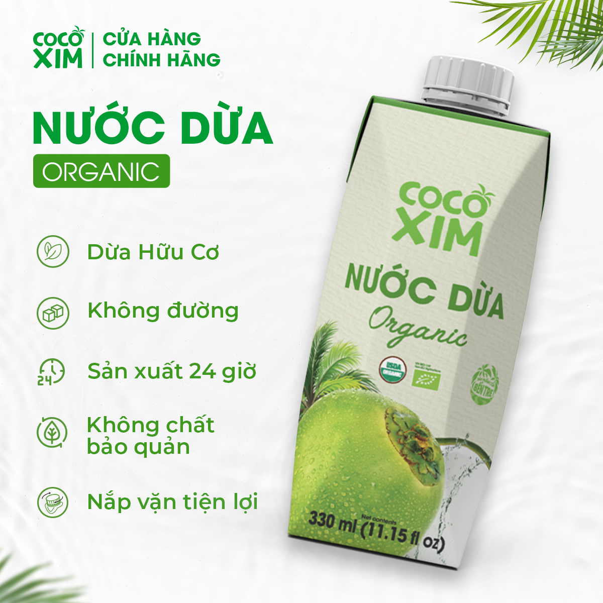 Nước dừa organic - Nước dừa nguyên chất - Thương hiệu Cocoxim
