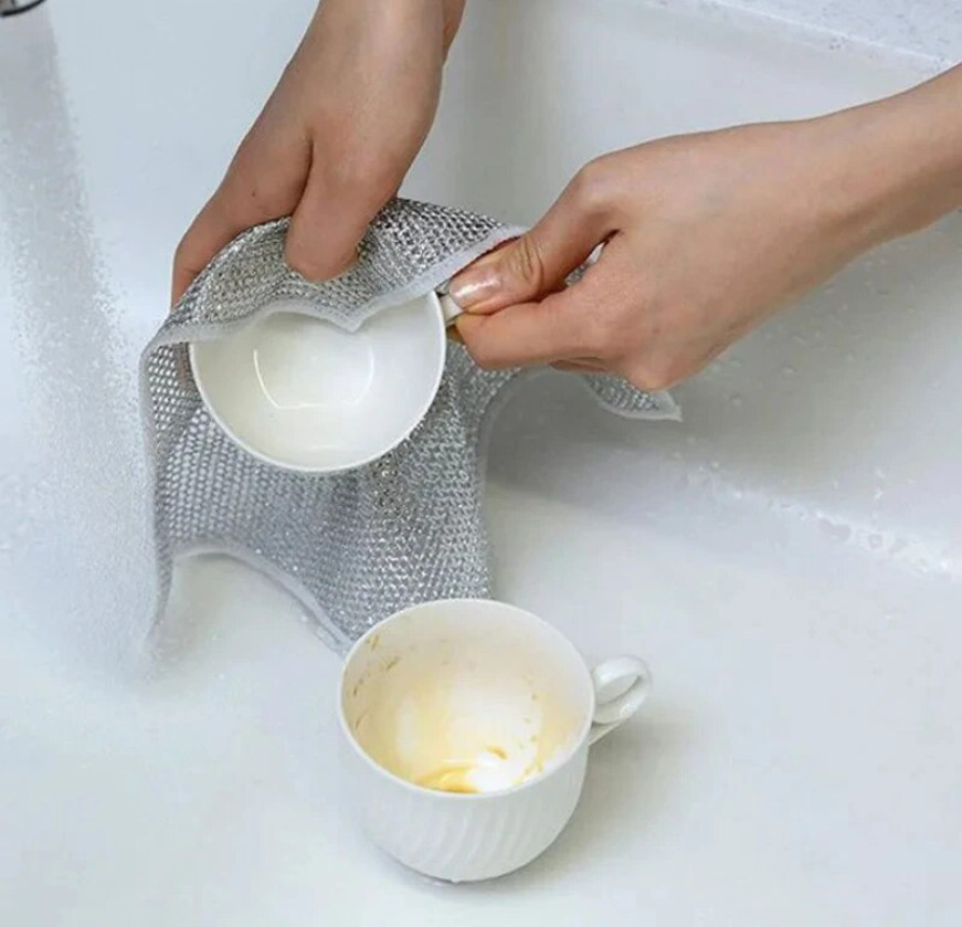 Khăn Lưới Sợi Kim Loại, Khăn Đa Năng, Miếng Vải Lưới Kim Loại Lau Nồi Chảo, Vệ Sinh Chén Dĩa Bằng Dây Thép Kim Loại Đa Năng, Tiện Dụng Bếp