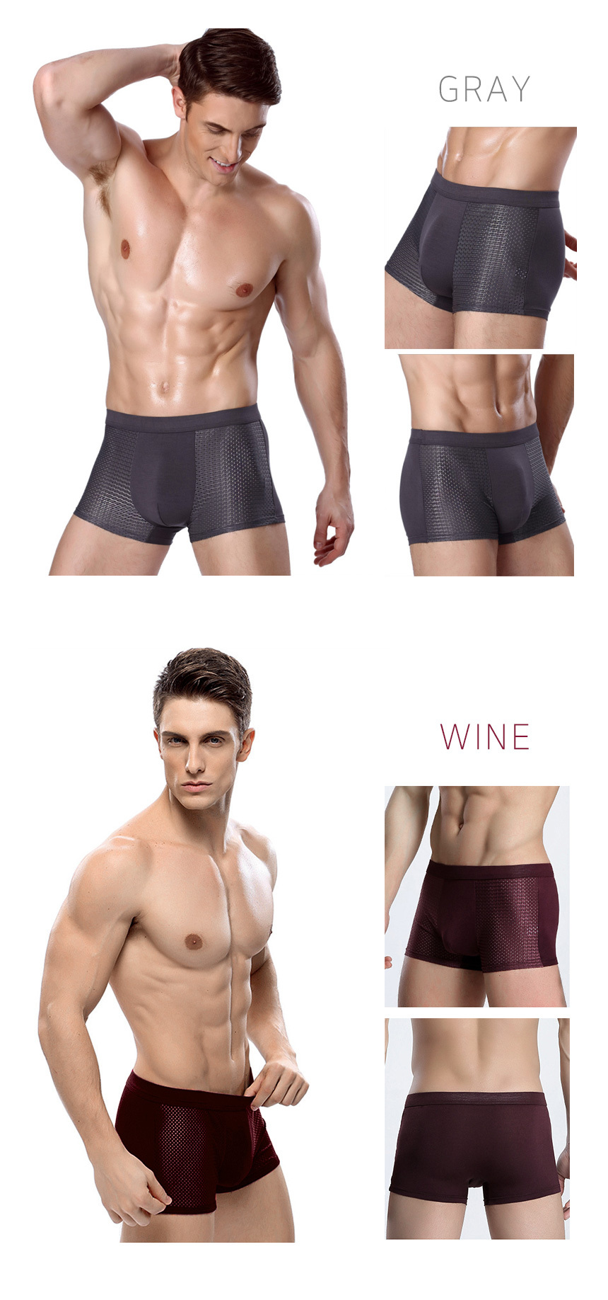Quần lót nam thông hơi - HỘP 4 CHIẾC - Quần sịp đùi nam Hàng loại 1 Chất Liệu: Siêu mềm, siêu mịn, co giãn thoải mái, thông thoáng mát lạnh - Size XL :45-60kg