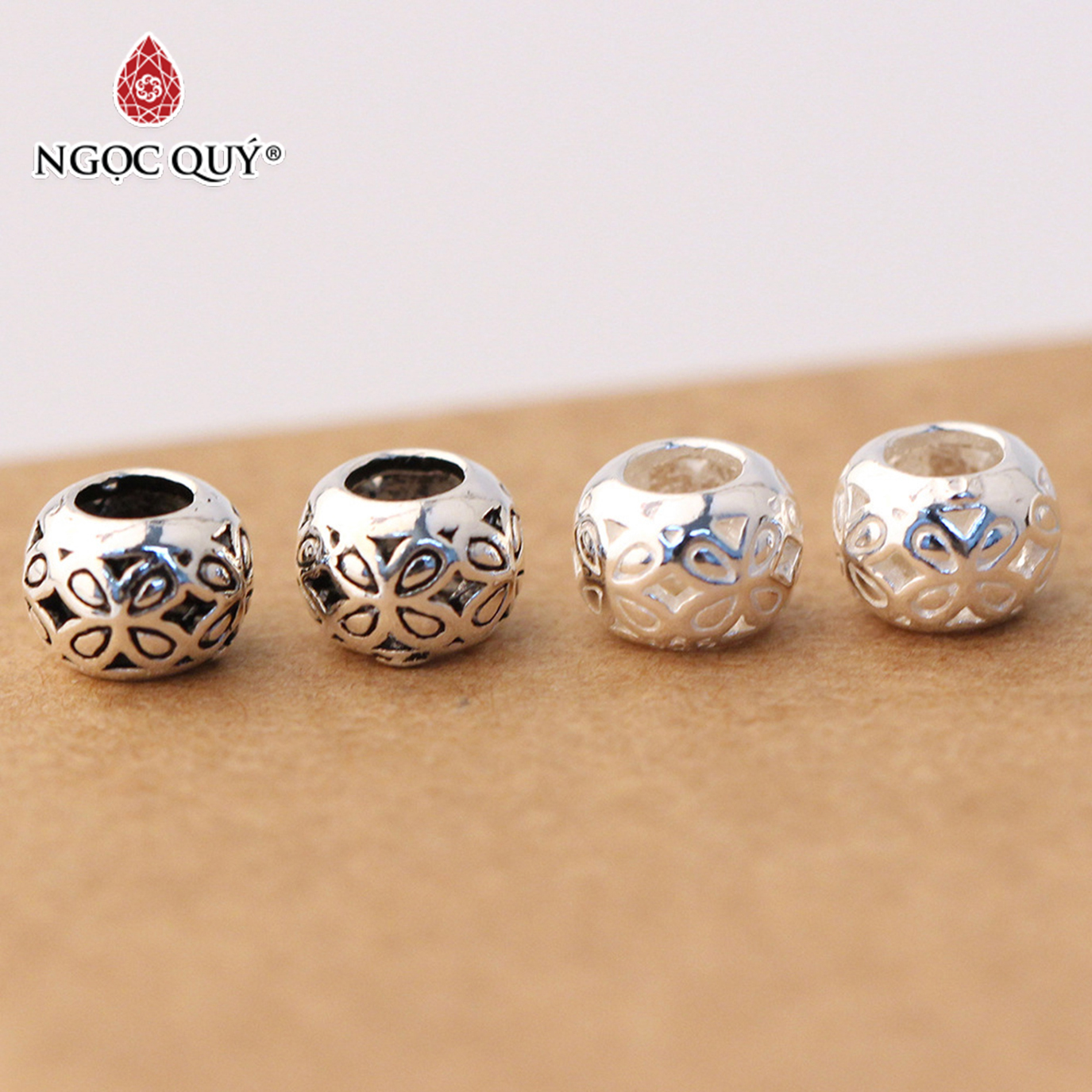 ✨Combo 4 cái charm bạc hình tròn xỏ ngang họa tiết cỏ 4 lá - Ngọc Quý Gemstones