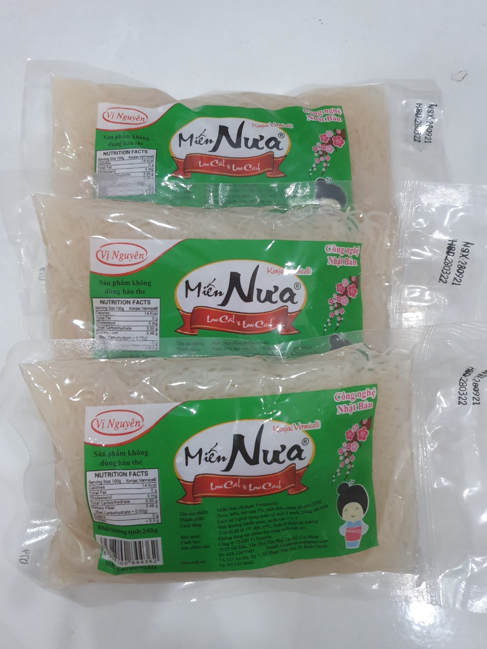 MIẾN NƯA VỊ NGUYÊN 240G - Xuất xứ: Việt Nam - Hạn sử dụng: 6 tháng (gói 240g) - Đóng gói: 240g/gói - Bảo quản: Nơi thoáng mát Những thực phẩm được làm từ bột Glucomanna