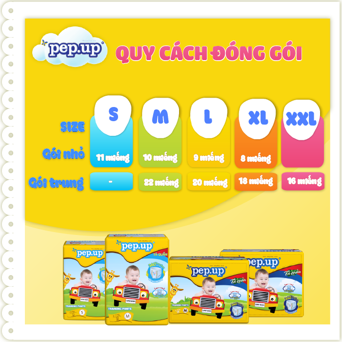 Combo 4 Gói Tã/Bỉm Quần Em Bé Pep.up Extra Dry Siêu Mềm Mại, Siêu Khô Thoáng, Kháng Khuẩn Size M (10 Miếng/Gói)
