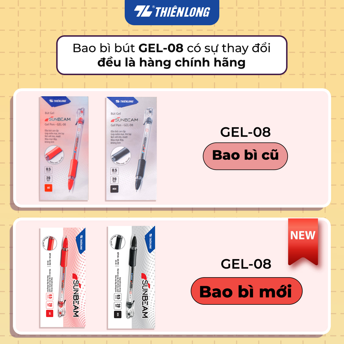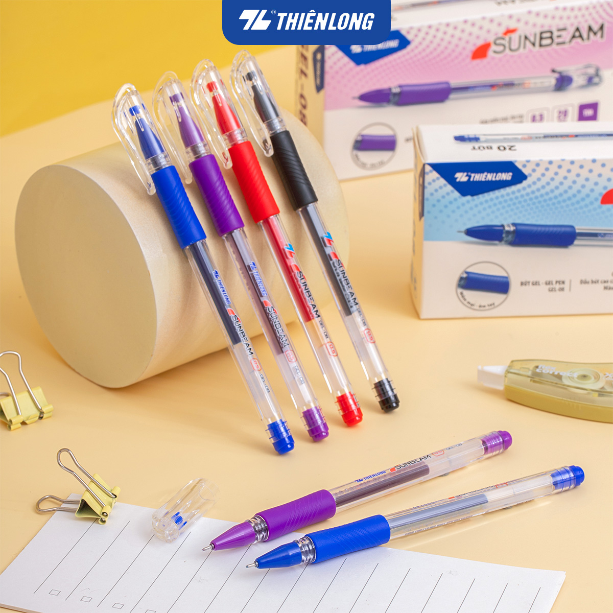 ✨Combo 5/10/20 Bút Gel Thiên Long GEL-08 ngòi 0.5mm mực xanh đỏ đen tìm có nắp đậy, đệm cầm tay phù hợp cho học sinh