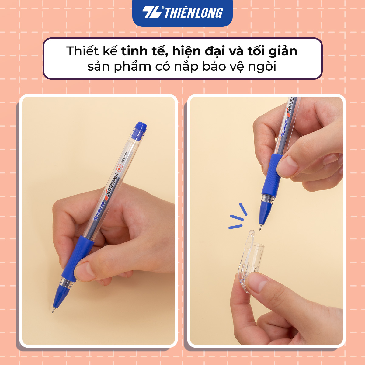 Thương hiệu: Thiên Long Xuất xứ: Việt Nam Tính năng nổi bật: Bút có thiết kế hiện đại, thân tròn, dài rất phù hợp với tay cầm của học sinh, sinh viên, nhân viên văn