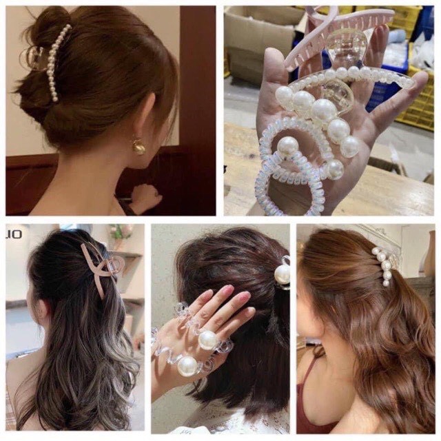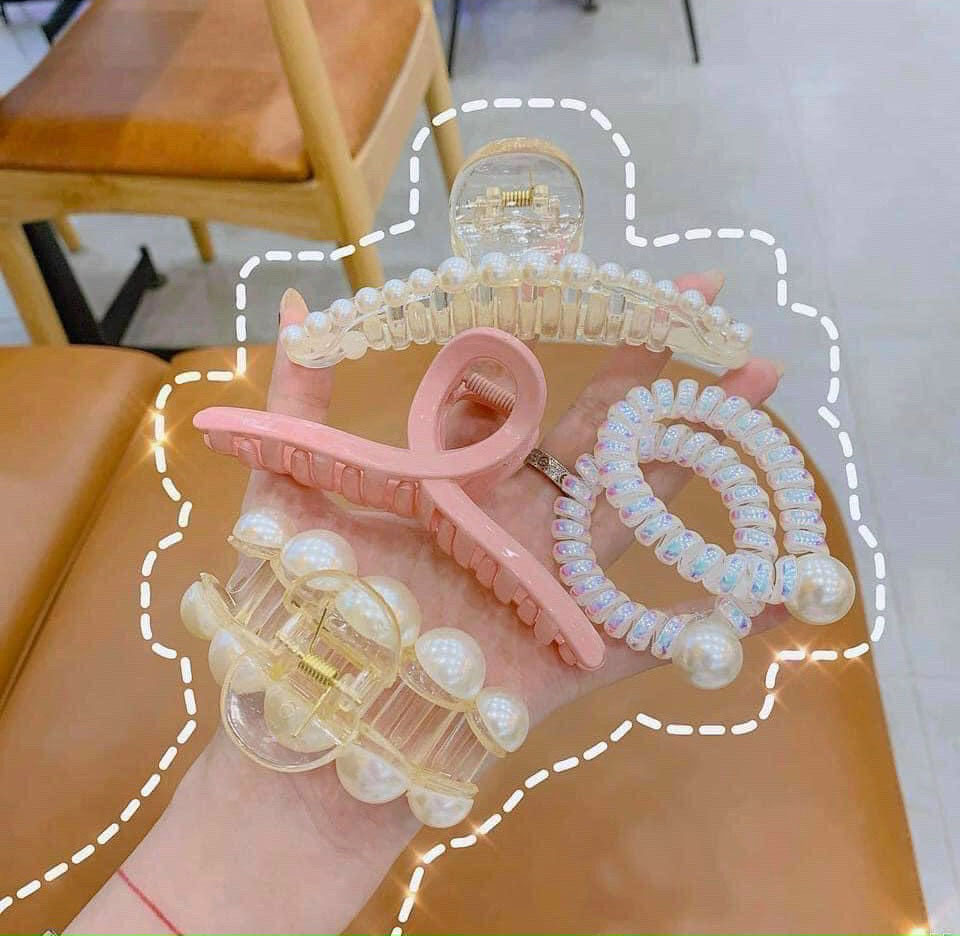 Bộ 5 món kẹp tóc đính ngọc trai, cột tóc Hàn Quốc phong cách trẻ trung xinh xắn KT28Kẹp càng cua, dây buộc tóc đính ngọc trai là món phụ kiện tóc rất được yêu thích trong một năm đầy biến động vừa q...