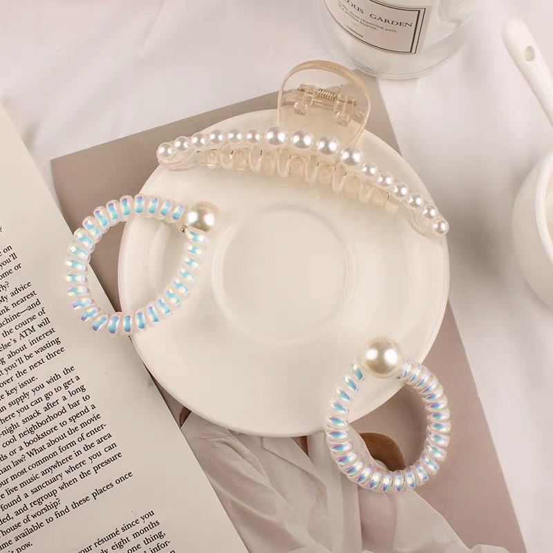 Bộ 5 món kẹp tóc đính ngọc trai, cột tóc Hàn Quốc phong cách trẻ trung xinh xắn KT28 Kẹp càng cua, dây buộc tóc đính ngọc trai là món phụ kiện tóc rất được
