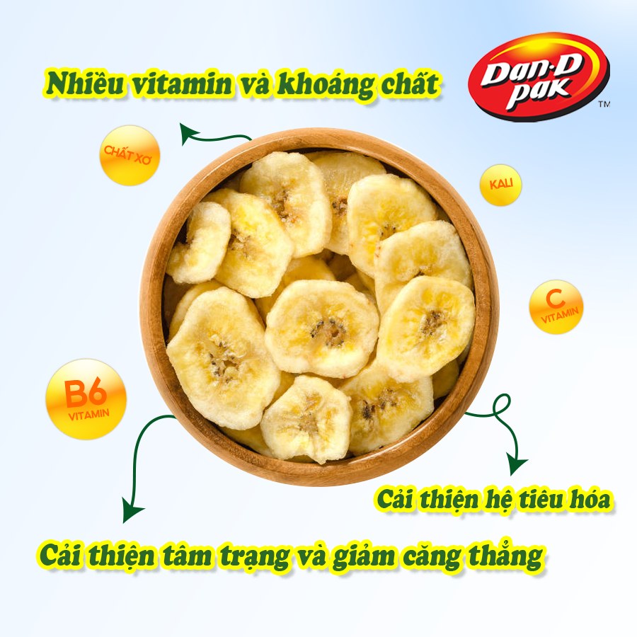 ✓ Chuối sấy có chứa nhiều thành phần dinh dưỡng như các loại vitamin, chất bột, tinh bột, protein, các chất khoáng như magie, natri, canxi, lưu huỳnh, kẽm, sắt, kalium, lipid, protid, glucid, phosphat.