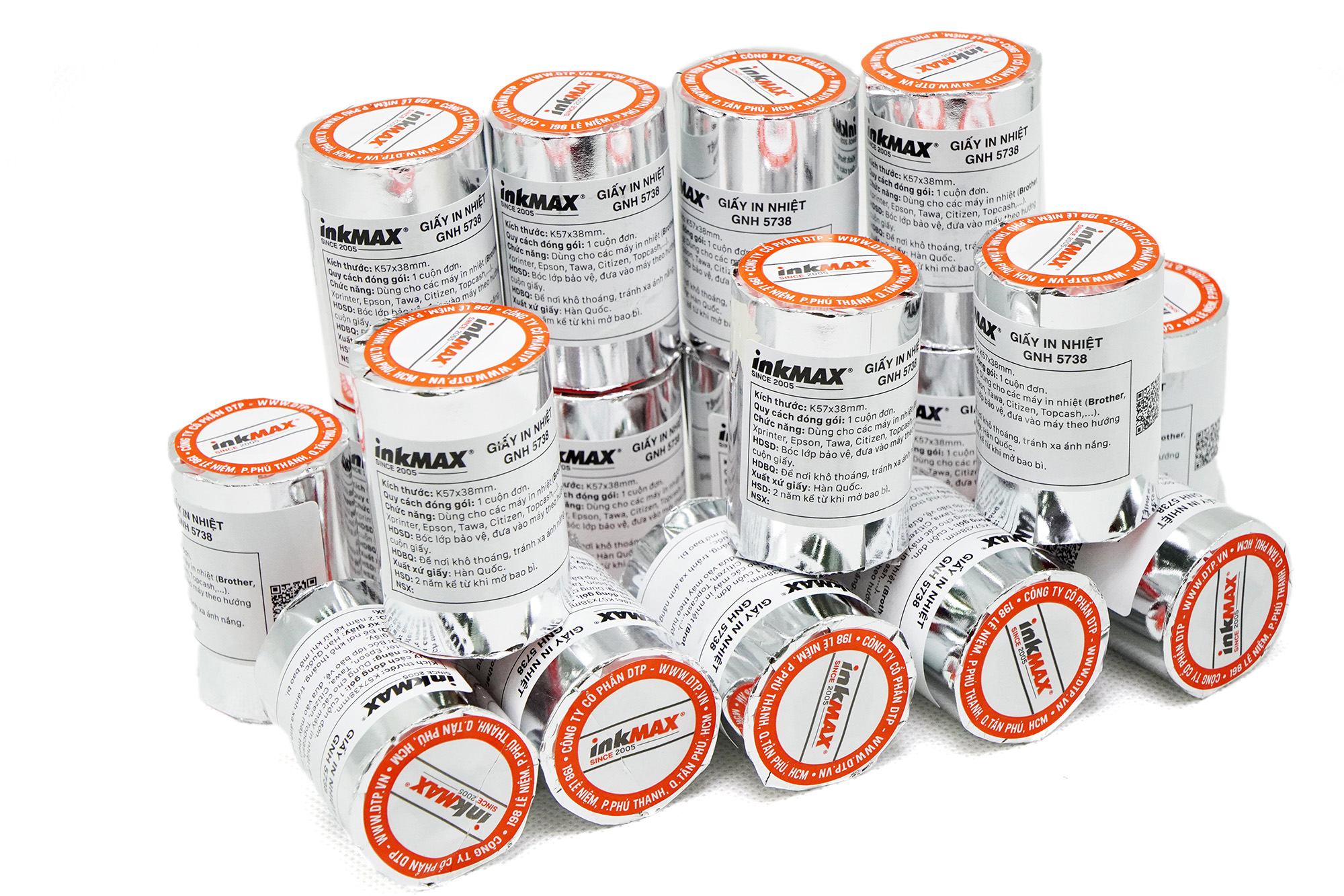 - Quy cách đóng gói: 100 cuộn / Thùng - Đường kính cuộn: 38mm - Lõi nhựa - đường kính trong 9mm, đường kính ngoài 13mm - Nguyên liệu giấy nhập khẩu chất lượng cao