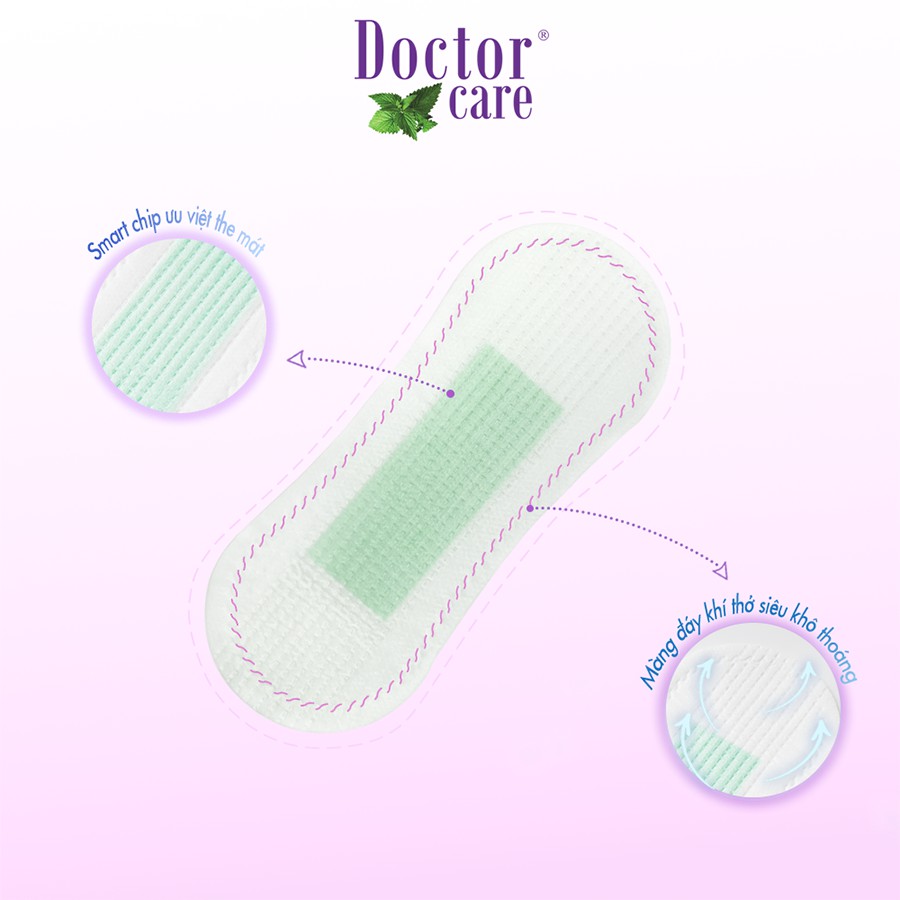 - Băng vệ sinh thảo dược Doctor Care hàng ngày có cấu trúc 3D gồm 6 lớp thấm hút và kháng khuẩn nhưng vẫn giữ được kết cấu siêu mỏng, siêu nhẹ