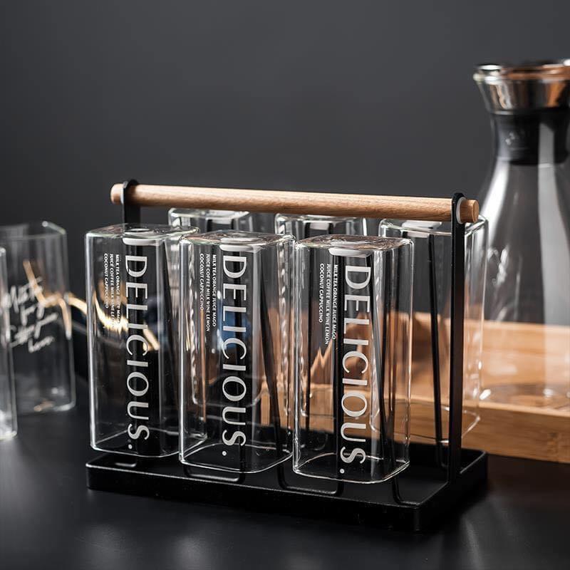 ✨Combo 6 cốc uống nước thủy tinh chịu nhiệt cao cấp kèm giá úp