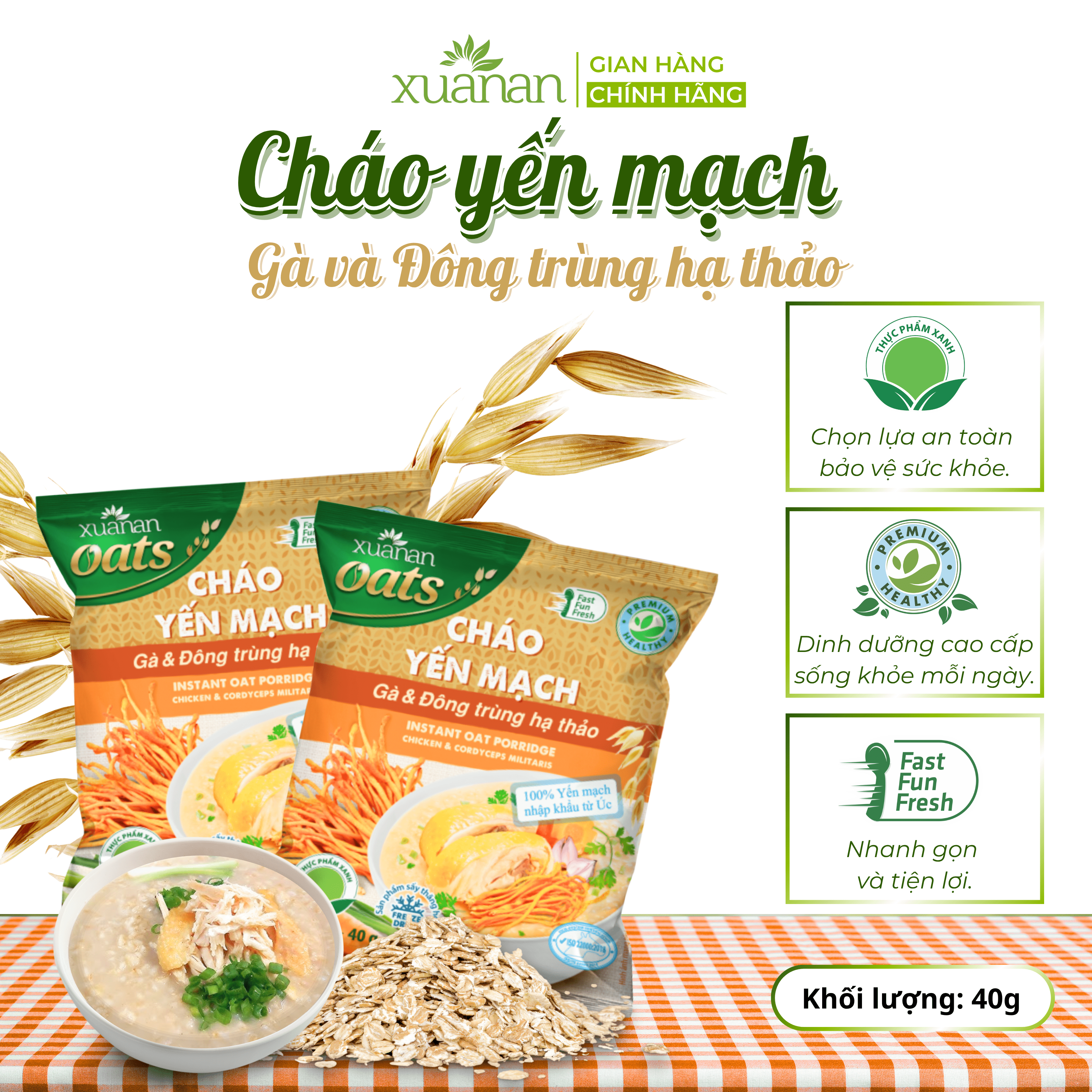 ✨Combo 6 Gói Cháo Yến Mạch Thịt Gà & Đông Trùng Hạ Thảo Xuân An 40G (Tặng Kèm 1 Gói)