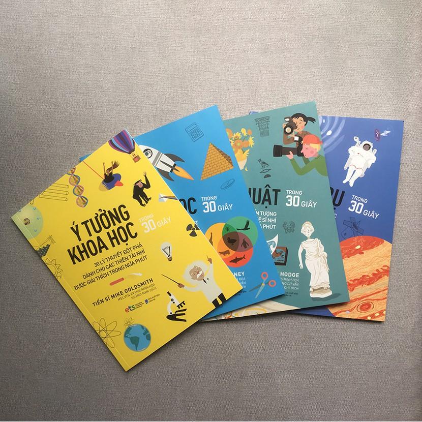 ệ thuật trong 30 giây (Susie Hodge): Con người đã sáng tạo nghệ thuật trong suốt hàng nghìn năm. Họ điêu khắc, vẽ, in, tạo ra những tác phẩm từ nhỏ xíu đến đồ sộ, khổng lồ. Cuốn sách khám phá câu chuyện thú vị của nghệ thuật, từ sơ khai đến hiện đại. Mỗi chương sẽ đề cập đến một thể loại nghệ thuật khác nhau, được sáng tạo ở những thời kỳ khác nhau dưới bàn tay rất nhiều nghệ sĩ.