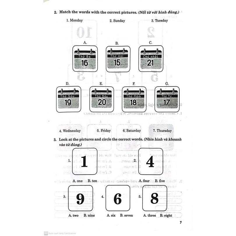 Các em sẽ luyện viết và học từ tiếng anh bằng các hình ảnh minh họa sinh động. Sau phần luyện viết từ vựng là các hoạt động chọn từ đúng, điền từ, ghép từ với hình thích hợp, sắp xếp từ. Nhằm giúp các em ôn luyện từ vựng đã học. Sau mỗi 3 đơn vị bài học có phần ôn tập (Review) với các hoạt động lý thú giúp các em củng cố kiến thức.