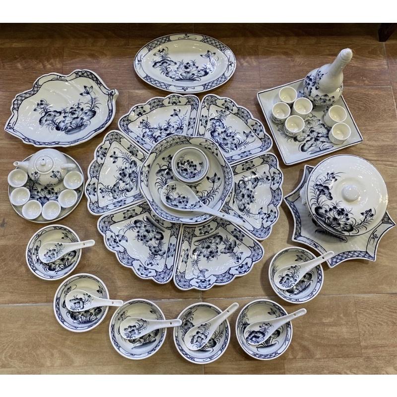 Bộ đồ ăn Bát Tràng - Sản phẩm bao gồm: 6 bát cơm, 1 mắm, 1 muối, 1 tô 16, 1 tô 18, 1 đĩa tròn 14, 1 đĩa tròn 16, 1 đĩa tròn 18,