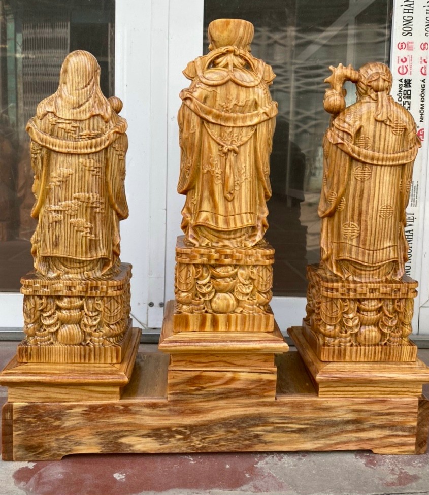 Bộ tượng tam đa phúc lộc thọ được làm bằng gỗ huyết long