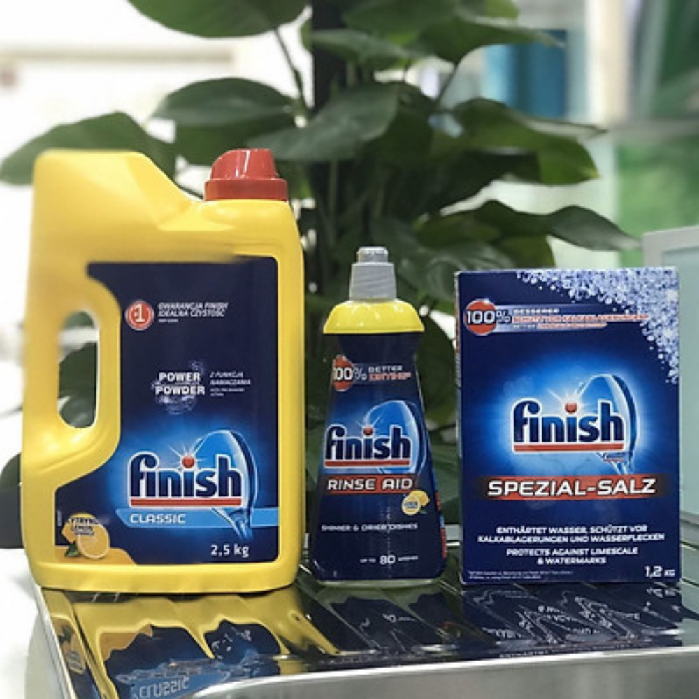 - Finish là thương hiệu rửa chén đĩa tự động số 1 Thế giới (được giới thiệu bởi hầu hết các thương hiệu máy rửa chén trên toàn Thế giới) Muối rửa chén Finish Dishwasher