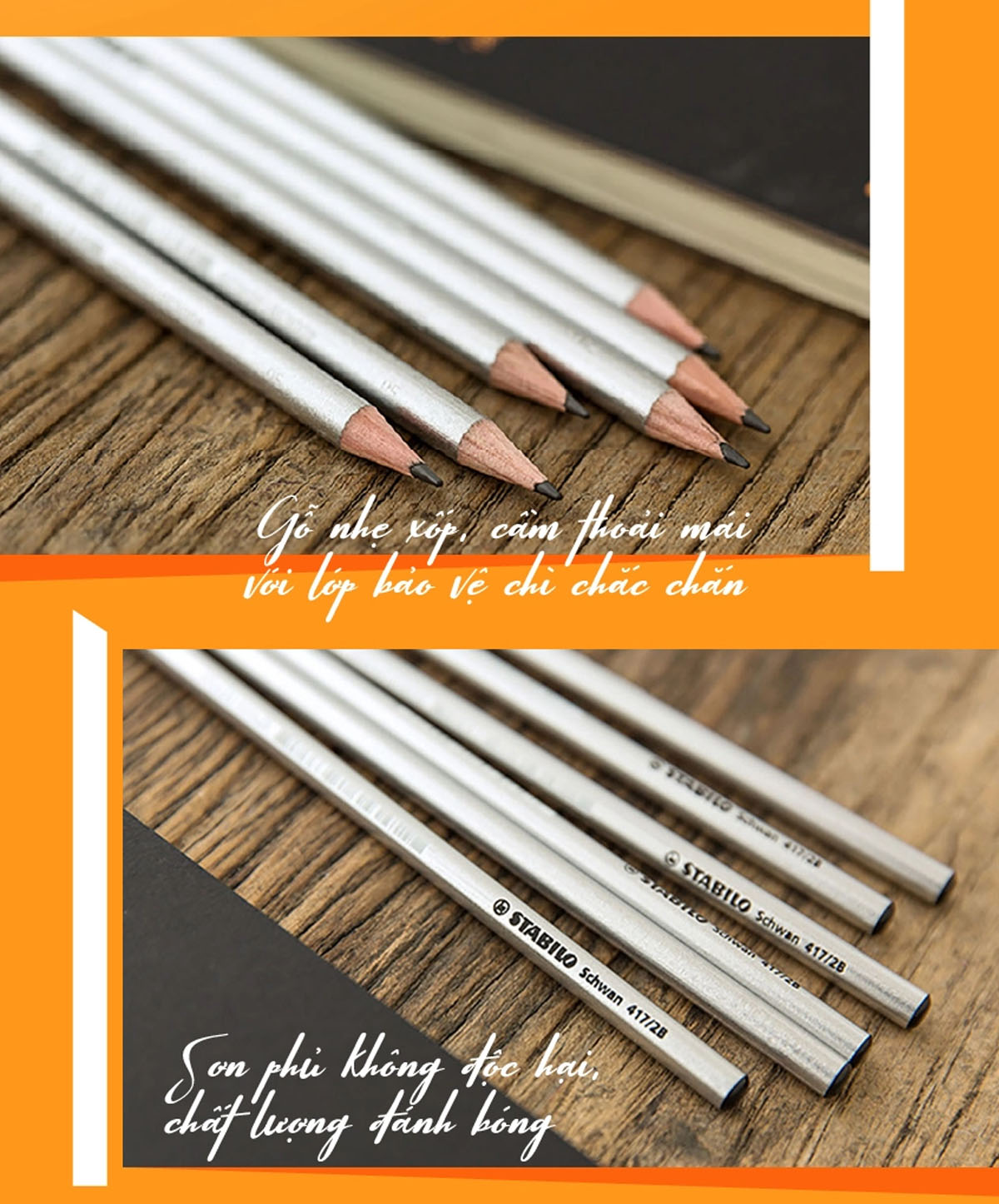 Mua tại Tiktok️ Ruột chì mềm, nét đậm tùy thuộc vào các độ. ️ Thân gỗ mềm dễ chuốt, có thể sử dụng dao chuốt, gọt chì ️ Bút dùng để viết, vẽ phác thảo trên nhiều