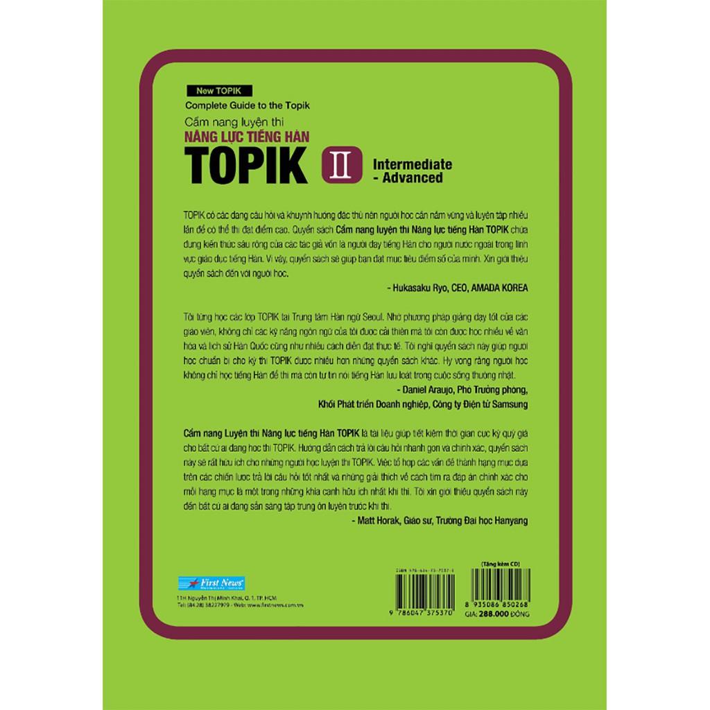 Sau khi hoàn tất chương trình học tập ở giáo trình TOPIK I, người học muốn đạt trình độ Trung – Cao cấp có thể chuyển sang giáo trình TOPIK II. Cẩm nang