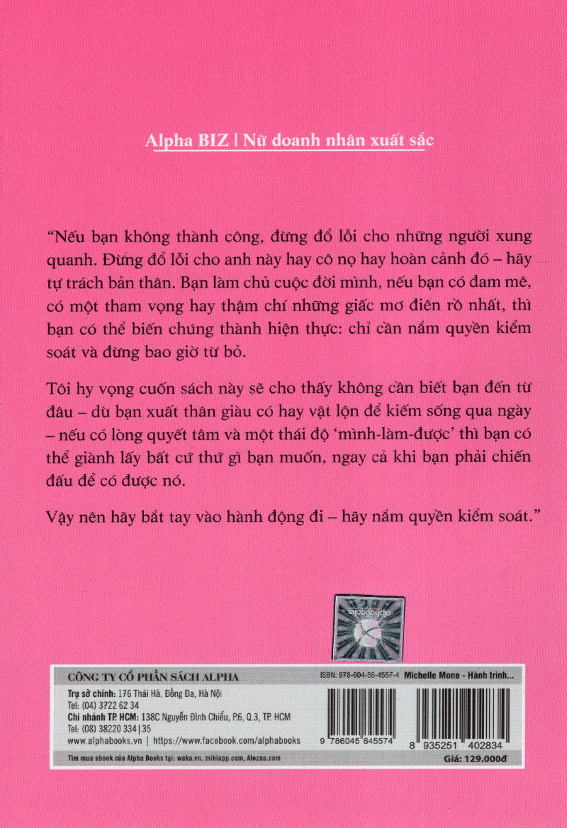 Tôi trở hành một người mẹ trẻ ở tuổi 20 và suýt nữa mất đứa con thứ hai khi thằng bé bị sinh non bốn tuần. Áp lực của việc vừa kinh doanh vừa cố làm một người mẹ tốt đã đẩy tôi đến bên bờ vực thẳm. Vào thời điểm tồi tệ nhất, tôi tăng cân đến mức phải mặc quần áo cỡ XL và từng nghĩ đến việc tự tử. Tôi đã xoay chuyển tình thế từ việc đứng bên bờ phá sản sang việc có hàng triệu đô - la trong ngân hàng. Tôi đắm chìm trong lối sống thượng lưu khi lái những chiếc xe bóng bẩy đắt tiền và đi ăn tiệm với những nhân vật nổi tiếng thế giới, như gia đình Clinton chẳng hạn. Tôi suýt nữa chết chìm trong thời khắc khó khăn nhất khi cuộc hôn nhân của tôi chính thức đổ vỡ trước công chúng. Tên tôi bị lôi lên khắp các mặt báo khi người ta phát hiện ra chồng tôi ngoại tình với trưởng nhóm thiết kế của tôi. Và sau đó tôi phải đấu tranh để giành lại doanh nghiệp mà tôi đã gây dựng từ hai bàn tay trắng” Đó chính là lời bộc bạch của bà trùm nội y Michelle Mone về cuộc đời mình. Mỗi ngày đều là một bước tiến , một nỗ lực không ngừng nghỉ, một sự hăng hái nhiệt huyết mạnh mẽ mà Michelle dành cho công việc và cuộc sống.
