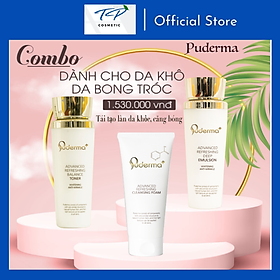 ✨Combo dành cho da khô và da bong tróc: sữa rửa mặt Puderma, toner Puderma, và sữa dưỡng Puderma