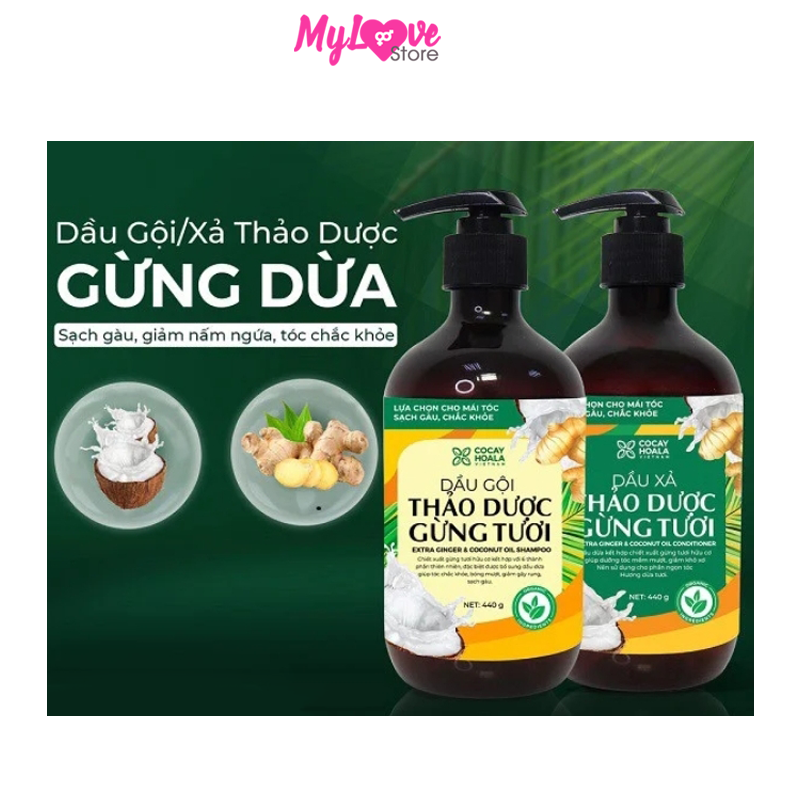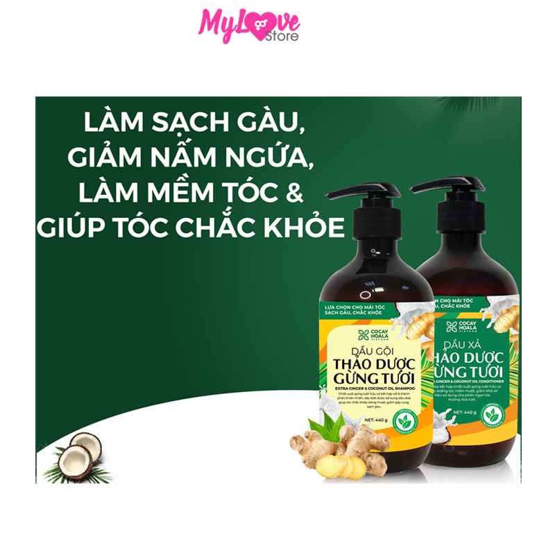 Combo Dầu Gội Xả Gừng Dừa Hữu Cơ Cocayhoala Ngăn Rụng Tóc Kích Thích Mọc Tóc - Giảm Gàu 440g + Tặng Gel Tẩy Da Chết Cafe Cocayhoala Sáng Da Sạch Mụn - Tăng Hấp Thụ Dưỡng Chất của Da - Chiết Xuất Cafe, Tuýp 100g mylovestore