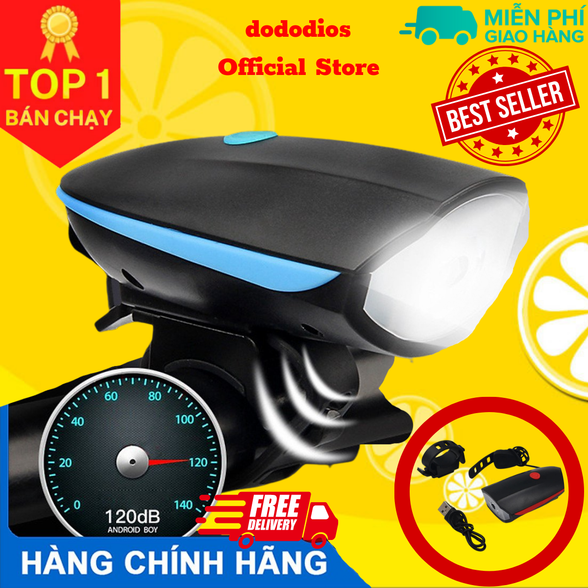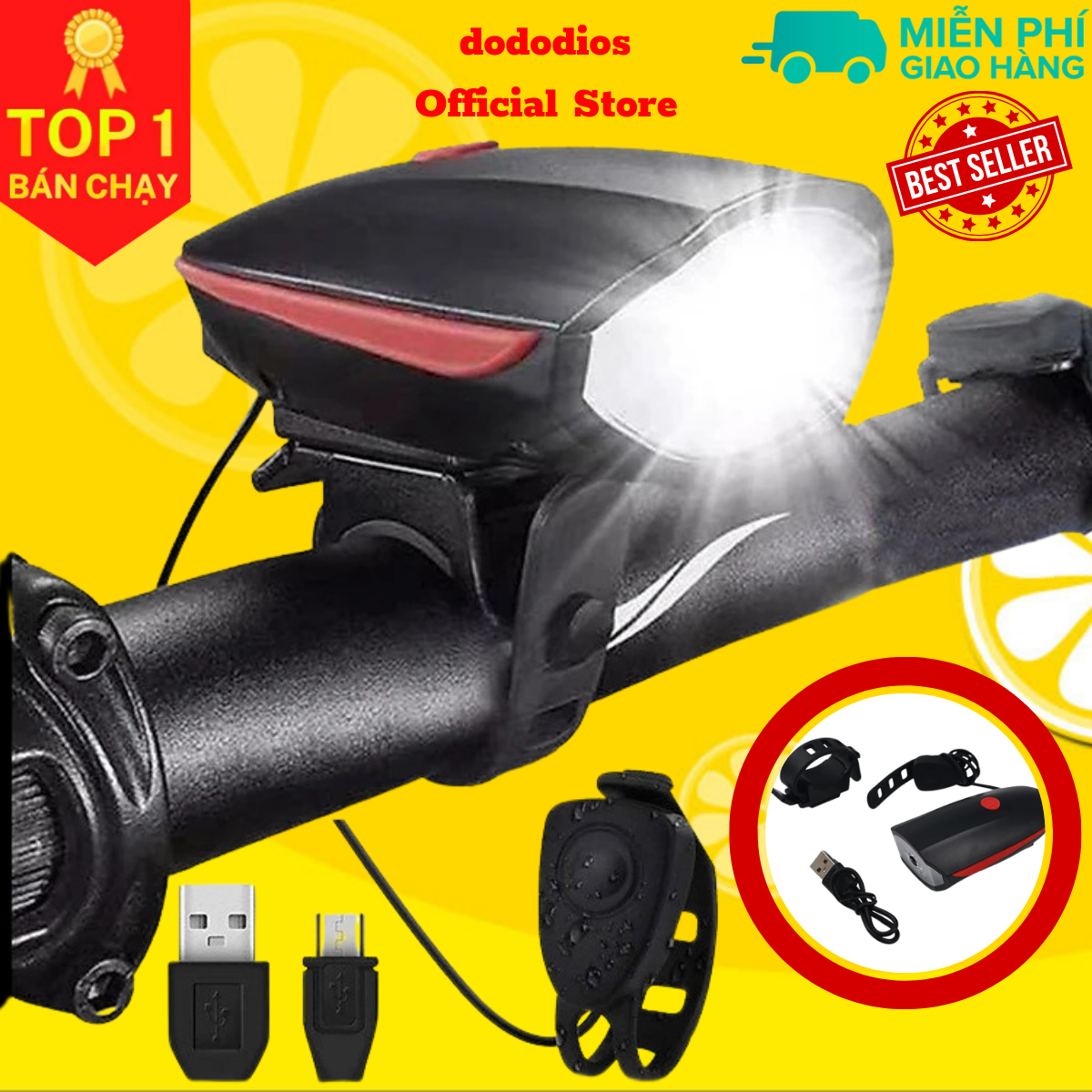 Đèn xe đạp thể thao siêu sáng có còi pin sạc usb led T6 chống nước - Đèn còi xe đạp có 3 chế độ sáng còi to CHÍNH HÃNG DODODIOS