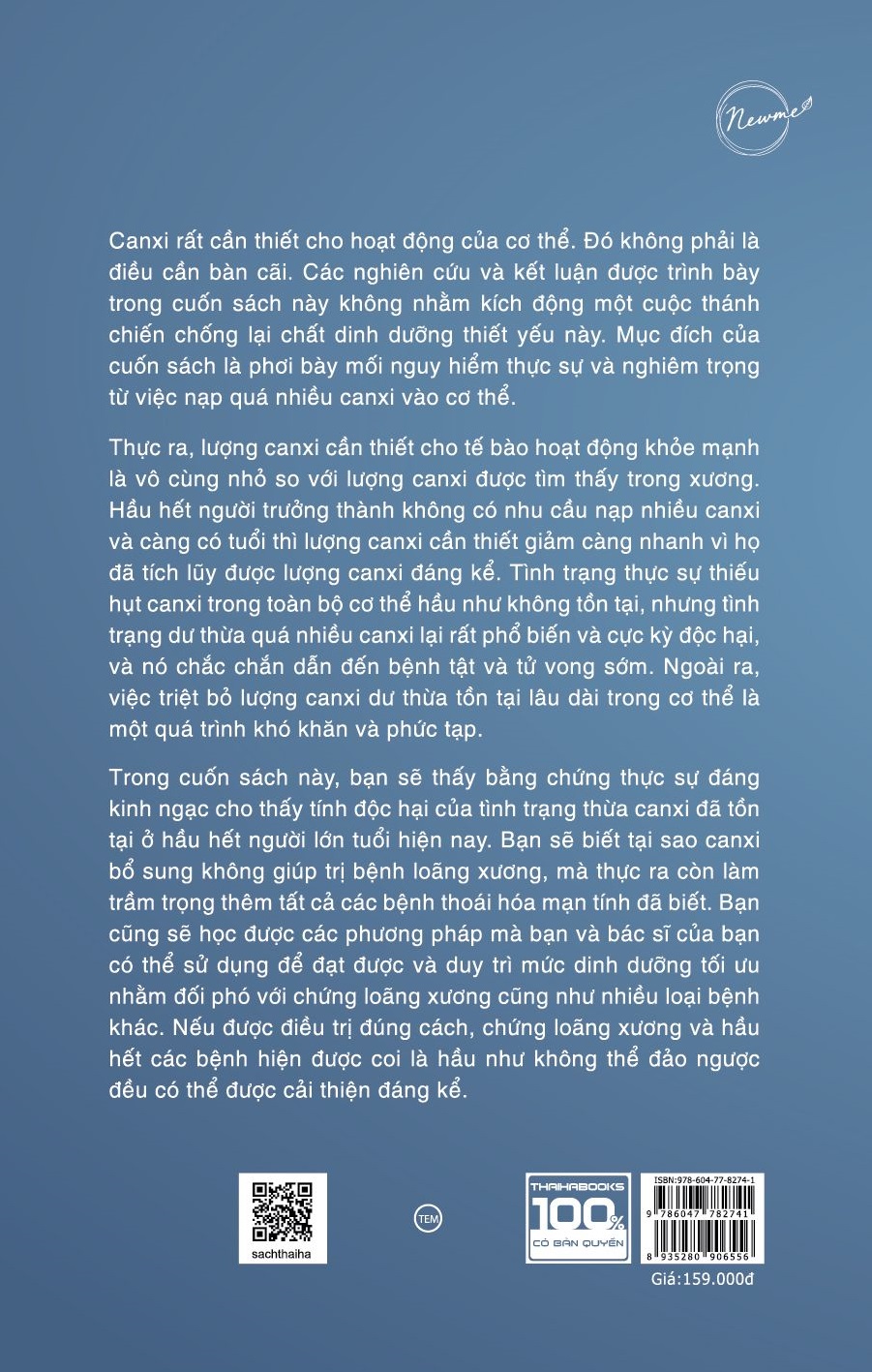 Trong các trang tiếp theo, bạn sẽ gặp bằng chứng thực sự đáng kinh ngạc cho thấy tính độc hại của tình trạng thừa canxi vốn tồn tại ở hầu hết người lớn tuổi hiện nay. Bạn sẽ biết tại sao canxi bổ sung không giúp trị chứng loãng xương, mà thực ra còn làm trầm trọng thêm tất cả các bệnh thoái hóa mạn tính đã biết. Bạn cũng sẽ học được các phương pháp mà bạn và bác sĩ của bạn có thể sử dụng để đạt được và duy trì mức dinh dưỡng tối ưu nhằm đối phó với chứng loãng xương cũng như nhiều loại bệnh khác. Nếu được điều trị đúng cách, chứng loãng xương và hầu hết các bệnh hiện được coi là hầu như không thể đảo ngược đều có thể được cải thiện đáng kể. Hi vọng rằng khi những chân lý trong Đừng chết bởi canxi được áp dụng, bạn và vô số người khác sẽ không phải chịu những hậu quả đau lòng từ độc tính vốn dễ tránh của canxi thừa. Cầu cho chân lý giúp chúng ta sống lâu hơn và khỏe mạnh hơn.