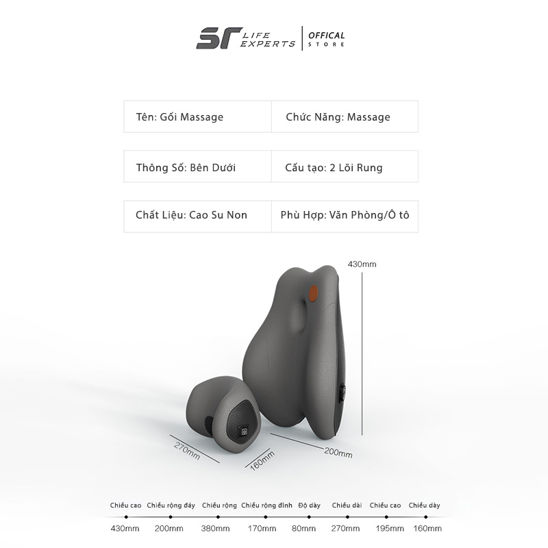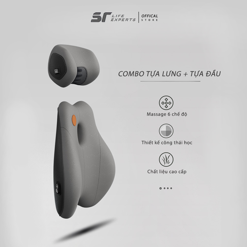Combo Gối Tựa Đầu Và Tựa Lưng Ô Tô Tích Hợp Massage Chườm Nóng Gối Tựa Cao Su Non, Giảm Đau Mỏi Cổ Vai Và Cột Sống - Sairui Store THÔNG TIN CHI TIẾT: