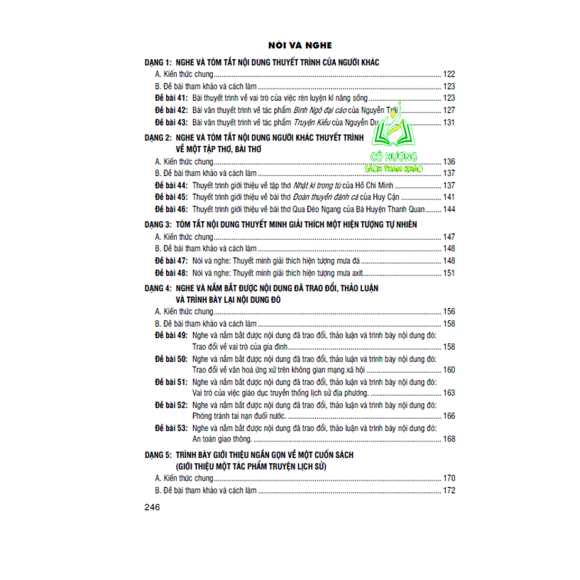 – Phần giới thiệu kiến thức, kĩ năng viết, nói – nghe các dạng bài.