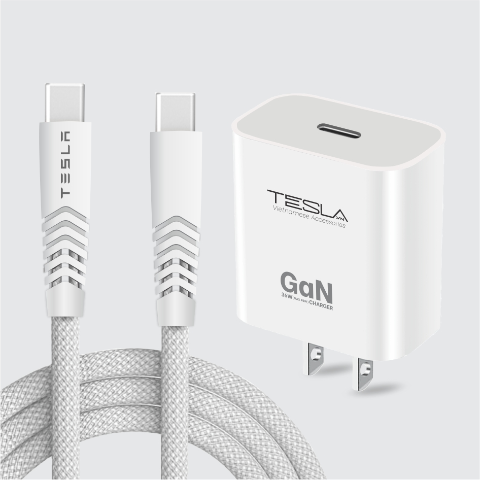✨Combo sạc nhanh hàng chính hãng TESLA TL12CBC 36W GaN USB-C (C to C) | Bảo hành 12 tháng 1 đổi 1 | Made in Việt Nam