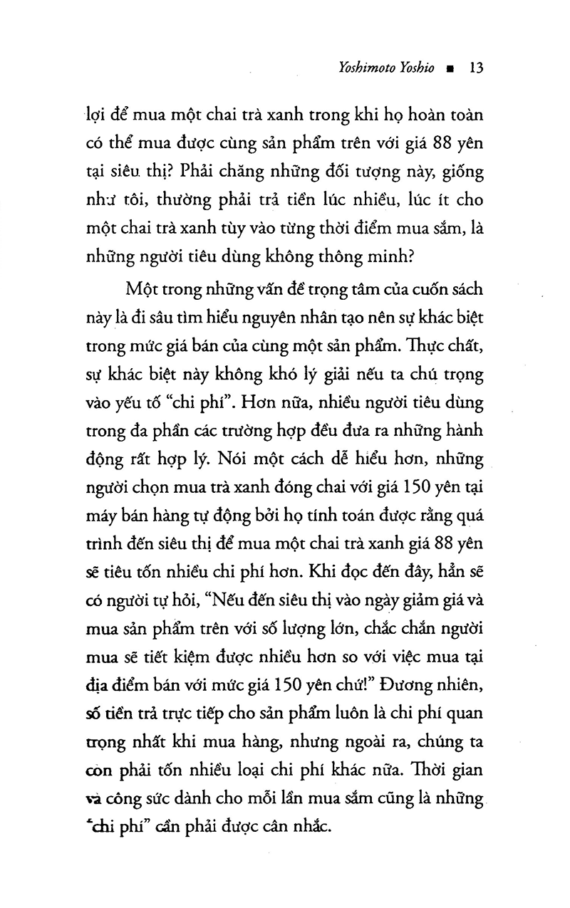 Đây là chương tổng quan mà tác giả đề cập khái quát nhất về những thắc mắc có thể các bạn thường bỏ qua khi đi mua sắm. Chẳng hạn như tại sao cùng một chai nước lọc mà bán ở siêu thị thì giá 5000đ, trong khi mua ở tiệm tạp hoá là 6000 và mua ở khách sạn, nhà nghỉ bình dân…ờm, giá rẻ nhất cũng 10.000đ.