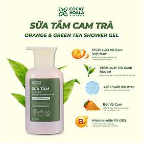1.Thành phần thiên nhiên ứng dụng nông sản Việt - An toàn, lành tính Sữa tắm Trắng Da Cam Trà Cỏ Cây Hoa Lá dưỡng trắng từ bột vỏ cam, tẩy da chết dịu nhẹ