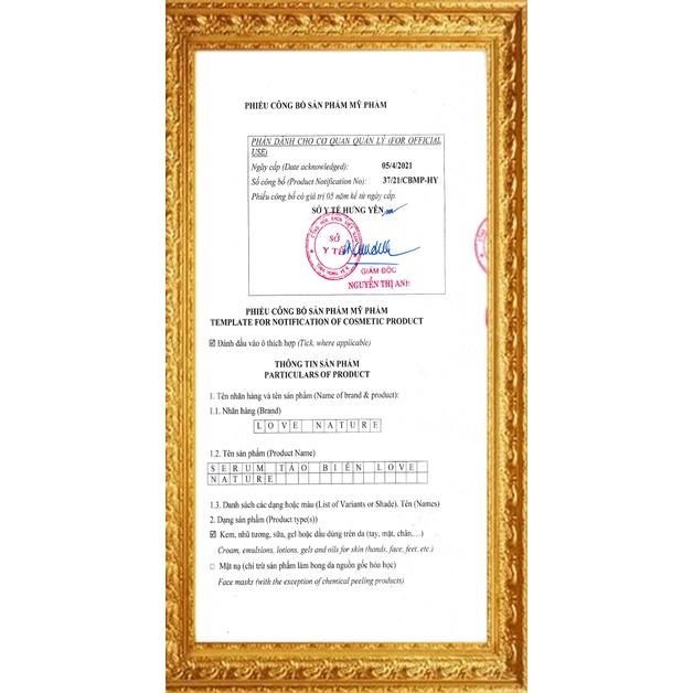 - Serum Tảo Biển Love Nature GOLDEN LIFE ONE Serum vi tảo collagen love nature Mang cả spa về ngôi nhà của bạn THÀNH PHẦN Thành phần Tinh chất Nghệ: Thành phần được chiết xuất từ Tảo: Thành phần được chiết xuất từ Kẽm: Tinh chất từ Sodium Hyaluronate Thành phần được chiết xuất từ rễ cây Cam Thảo: Thành phần Collagen Thuỷ phân Công thức 7 KHÔNG CÔNG DỤNG